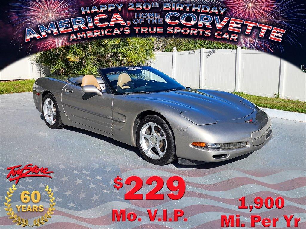 CORVETTE 1998 CONVERTIBLE, Light Pewter Metallic with Light Oak Leather Interior and Black Convertible Top, Automatic Transmission, Dual Power Sport Seats, AM-FM Stereo System with Bose Speakers, Dual Zone Climate Control Air Conditioning, Memory Package, All Power Options, Polshed Aluminum Wheels, Cold Air Intake. Very low mileage - This Corvette has been driven on average approximately 1,900 miles per year. LS1 Engine 5.7 Liter Fuel Injected 345 H.P. V8. This vehicle qualifies for our exclusive V.I.P. financing plan. Sale $15,875 / $229 mo. V.I.P. Call for details. Toy Store, Largo, Fl. 727-585-6000 www.vettenet.com Open 6 days, Sunday by appointment. WE BUY CLEAN CORVETTES! Shipping assistance available to 48 states. We can help with less than perfect credit. Trades considered. SELLING QUALITY LOW MILEAGE CORVETTES FOR 60 YEARS! EXPECT TO BE IMPRESSED PERFORMANCE SPOKEN HERE