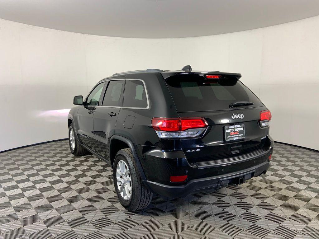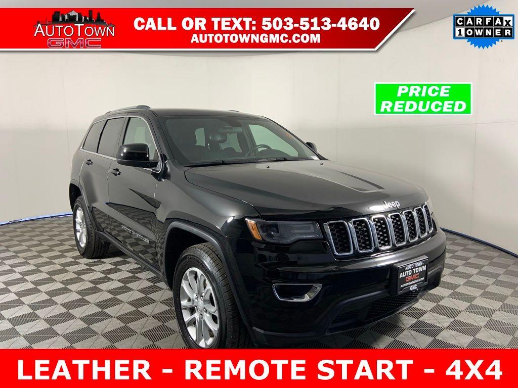 Used 2021 Jeep Grand Cherokee Laredo X 4x4 SUV Diamond Black Crystal Pearlcoat 4WD 3.6L V6 24V VVT 8-Speed Automatic<br><br>Grand Cherokee offers best in class 4x4 capability<br><br>Features: Remote Keyless Entry w/ Push Start, Remote Start, Power Drivers Seat, Heated Front Seats, Leather Wrapped Heated Steering Wheel, 8.4" Touchscreen w/ Navigation, USB & Aux Inputs, Android Auto/ Apple CarPlay, Backup Camera, Bluetooth Handsfree & Streaming, Automatic Dual Zone Climate Control, Automatic Headlights, Auto Dimming Rearview Mirror, Universal Garage Remote, Power Sunroof, Power Liftgate, Lane Departure Warning, Blind Spot Warning Forward Collision Warning, Advanced Braking Assist, Automatic High Beam, Heated Mirrors, Tow Package, HID Headlights, Fog Lights, 20" Alloy Wheels<br><br>One Owner, California Owned, Regularly Serviced, Clean Carfax - No Accidents