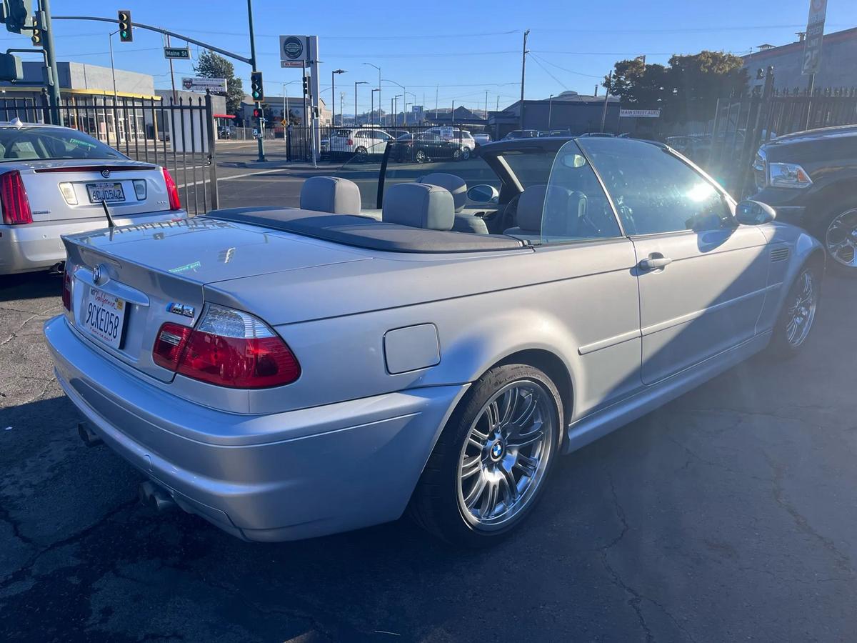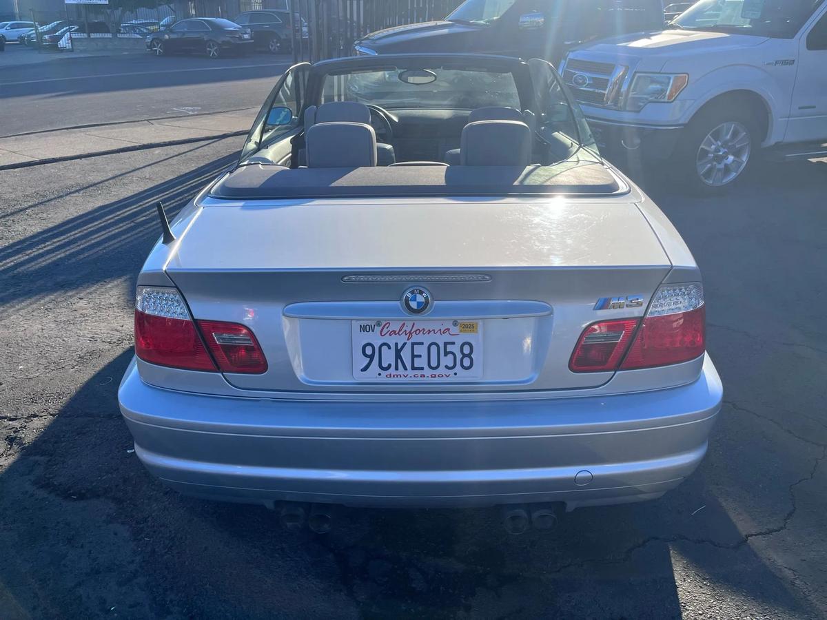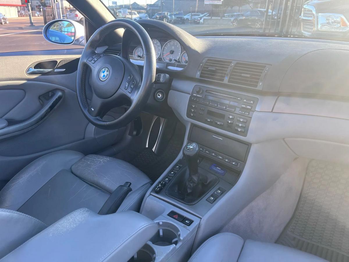 is proud to present this exceptional vehicle!?? **2003 BMW M3 Convertible 2D - RWD**Experience performance, comfort, and reliability in this 2003 BMW M3.Equipped with a 6-cylinder 6-Cyl, 3.2 Liter, Manual, 6-Spd transmission, and RWD system, it's built to handle your daily drives and weekend adventures with ease.---**?? Vehicle Highlights** Mileage: 107,010 Engine: 6-Cyl, 3.2 Liter, Gasoline, 333 HP Drivetrain: RWD Exterior Color: Silver Interior Color: Gray Body Style: Convertible VIN: WBSBR93463PK03013 Stock #: BMW3013---**?? Pricing** Price: $$18,995 Ask about financing options. We work with all credit types.---**? Features & Options**6-Cyl, 3.2 Liter, Manual, 6-Spd, RWD, Traction Control, Stability Control, ABS (4-Wheel), Air Conditioning, Power Windows, Power Door Locks, Cruise Control, Power Steering, Telescoping Wheel, AM/FM Stereo, CD/MP3 (Single Disc), Harman Kardon Sound, Dual Air Bags, Side Air Bags, Dual Power Seats, Leather, Rear Spoiler, Premium Wheels---? **We Make Car Buying Simple**All vehicles are inspected, serviced, and ready to drive.Trade-ins welcome Financing available