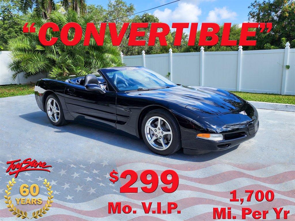 CORVETTE 2003 CONVERTIBLE, Black with Black Leather interior and Matching Convertible Top, Automatic Transmission, Dual Power Sport Seats, AM-FM Stereo System with CD Player and Bose Speakers, Polished Aluminum Alloy Wheels, Body Side Moldings, Head Up Display, Memory Package, Dual Zone Climate Control Air Conditioning, new exhaust, this beautiful black Corvette has been driven on average approximately 1,700 miles per year. LS1 Engine 5.7 Liter Fuel Injected 350 H.P. V8 w/ Billy Boat performance exhaust. This car qualifies for our exclusive V.I.P. financing plan, Sale $22,875 / $299 MO. Call for details. Toy Store, Largo, Fl. 727-585-6000 www.vettenet.com Open 6 days, Sunday by appointment. Trades considered. WE BUY CLEAN CORVETTES! Shipping assistance available to 48 states. We can help with less than perfect credit. SELLING QUALITY CORVETTES FOR 57 YEARS! EXPECT TO BE IMPRESSED. PERFORMANCE SPOKEN HERE