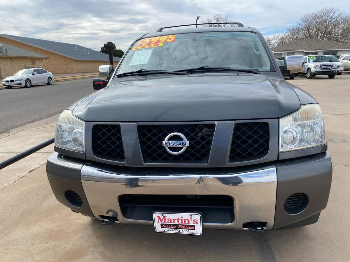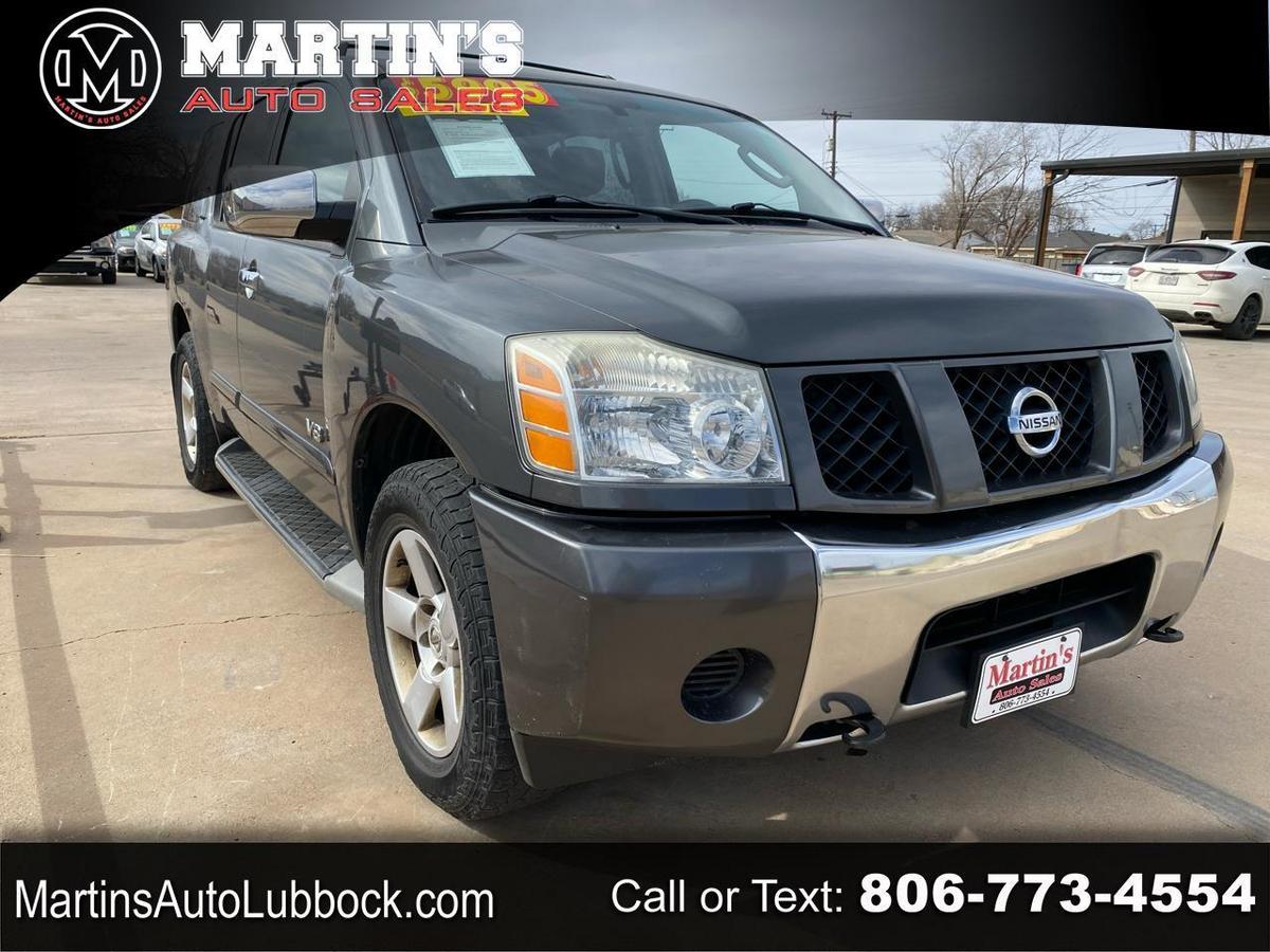 Get ready to hit the road in style and comfort with this sleek 2007 Nissan Armada in a classy Gray color. Equipped with a powerful 5.6L DOHC 32-valve Endurance V8 engine paired with a smooth 5-speed automatic transmission, this SUV is ready to take on any adventure you have in mind.With its All-Mode 4-wheel drive system, this Armada can handle any terrain or weather conditions effortlessly. Whether you're towing your toys to the lake or navigating through rough trails, the 6500# towing capacity and 4-wheel limited slip feature have got you covered.Step inside this spacious ride and you'll find luxury and convenience at every turn. The leather-wrapped steering wheel and gated transmission shifter offer a touch of elegance, while the rear proximity sensors and tire pressure monitoring system ensure your safety on the road.Need room for the whole family and their gear? Look no further. The Armada features plenty of storage options, including side/rear storage compartments and multiple power outlets for all your devices. The interior is designed with convenience in mind, from the HomeLink universal transceiver to the overhead console with compass and temperature display.Safety is a top priority in the Armada, with features like the Nissan advanced airbag system and supplemental roof-mounted side-impact curtain airbags for all rows. The 3-point seat belts with pretensioners, child safety rear door locks, and LATCH child seat system provide peace of mind for every journey.Let's not forget about the exterior features that make this Armada stand out from the crowd. The roof rack with crossbars, lower body step rails, and 18 aluminum alloy wheels add a touch of rugged elegance to this versatile SUV. Whether you're cruising down the highway or tackling off-road trails, the Armada is sure to turn heads wherever you go.Don't miss your chance to own this impressive 2007 Nissan Armada with all the bells and whistles you need for your next adventure. Come test drive it today and experience the thrill and luxury this SUV has to offer! Visit Martin's Auto Sales online to see more pictures of this vehicle or call us at 806-773-4554 today to schedule your test drive.