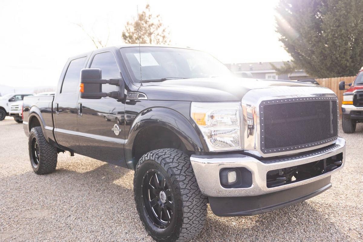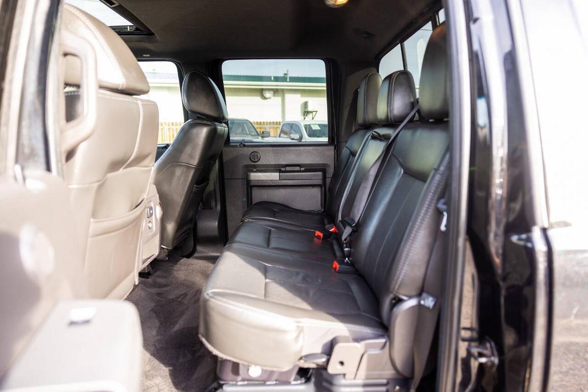 An absolute beauty – pristine, well-maintained 2011 Ford F-250 Super Duty Lariat Crew Cab 4x4 in stunning Tuxedo Black Metallic with black leather interior. This truck was loaded from the factory (original MSRP over $59k!) and still looks and drives like a premium rig. Key specs & highlights: Engine: Legendary 6.7L Power Stroke V8 Turbo Diesel (400 hp / 800 lb-ft torque) – massive towing power and reliability Transmission: Smooth 6-speed automatic Drivetrain: 4x4 with FX4 Off-Road Package (skid plates, electronic locking rear axle, etc.) Bed: 6'9 Towing/Safety: Trailer tow package, 10,000# GVWR, reverse camera/sensor, trailer brake controller, hill start assist Interior Luxury (Lariat level): Black leather heated seats (40/console/40), 10-way power driver/passenger seats, leather-wrapped steering wheel with audio controls, power moonroof, navigation system, SiriusXM radio, SYNC voice-activated, memory group, remote start, power sliding rear window, dual-zone auto climate, and more! Exterior: Chrome grille/bumpers, power telescoping/folding mirrors, locking tailgate with assist, fog lamps – all in flawless Tuxedo Black Metallic that shines! This truck is gorgeous inside and out – clean, no major issues, well-cared-for, and ready to impress. The 6.7L diesel is a beast for work, towing, or highway cruising, with solid real-world economy (typically 13-18 mpg unloaded depending on driving). Fully optioned with everything you want in a heavy-duty luxury truck. Priced right for the condition and features – these clean, loaded 2011 Lariats with the 6.7L are hard to find without being beat up.