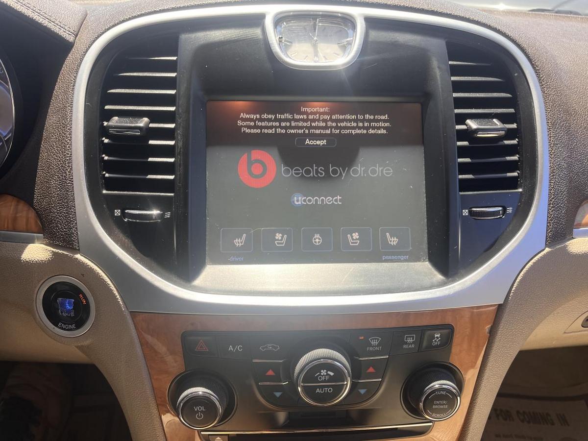 You are looking at this fantastic 2012 Chrysler 300 C RWD with low miles that is Brown in color and that is nicely equipped with AM/FM Compact Disc Player, Traction Control, Side Head Curtain Airbag, Electronic Parking Aid, Keyless Entry, Remote Ignition, Cruise Control, Heated Steering Wheel, Leather Steering Wheel, Steering Wheel Mounted Controls, DVD Player, Navigation Aid, Alloy Wheels, Chrome Wheels and more.