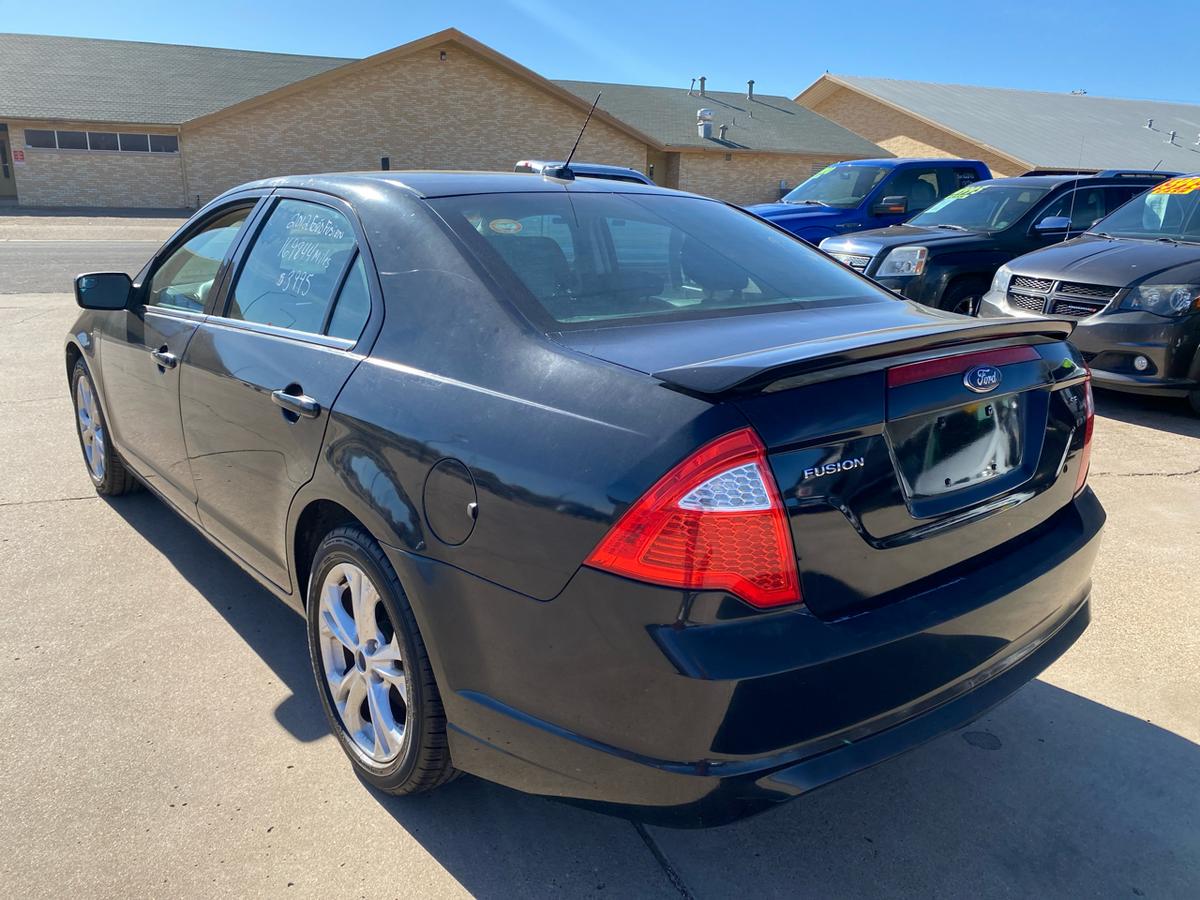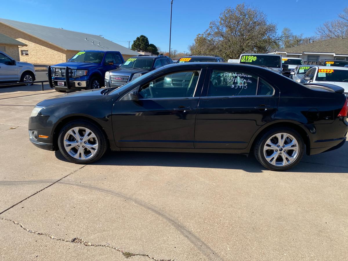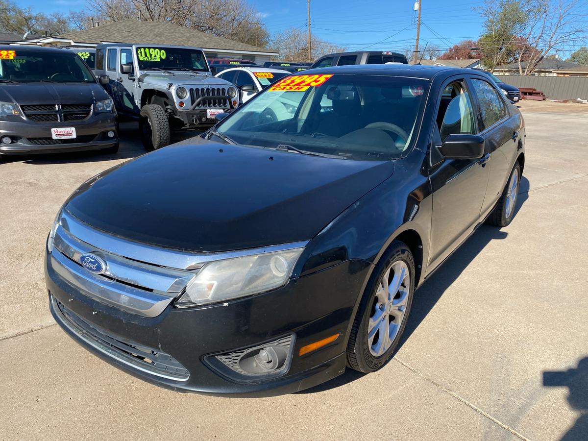Buckle up and get ready to hit the road in style with this sleek Black 2012 Ford Fusion! This beauty is powered by a 2.5L 16V I4 Duratec engine, effortlessly cruising along with front-wheel drive and a smooth Pwr rack & pinion steering system with electric variable assist.Impress onlookers with the chrome front grille and dual exhaust with chrome tips, making a statement as you zip by under the glow of the automatic quad halogen headlamps. Front fog lamps add a touch of mystery to your nighttime drives while the solar tinted glass keeps you cool and collected under the hot sun.Inside, sink into the plush front bucket seats with lumbar support and enjoy the convenience of the front row center console for all your storage needs. The instrument cluster with a trip computer keeps you informed while the Pwr windows with driver one-touch up/down and Pwr remote trunk release add a touch of luxury to your daily drives.Stay safe and secure with the AdvanceTrac (ESC) with brake actuated traction control and a full suite of airbags, including dual front airbags with an occupant classification system and side-impact airbags. Bring the whole crew along comfortably with the 60/40 split spring-assisted rear bench seat and take advantage of the LATCH system for the little ones.With features like the Perimeter anti-theft system, Tire pressure monitoring system, and SOS post-crash alert system, you can hit the road with peace of mind in this trusty Ford Fusion. So, grab the keys and get ready for adventures galore - whether it's a daily commute or a weekend road trip, this 2012 Ford Fusion is ready to take you there in style and comfort! Visit Martin's Auto Sales online to see more pictures of this vehicle or call us at 806-773-4554 today to schedule your test drive.