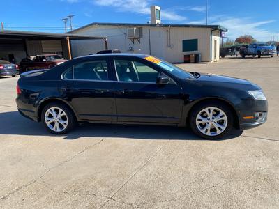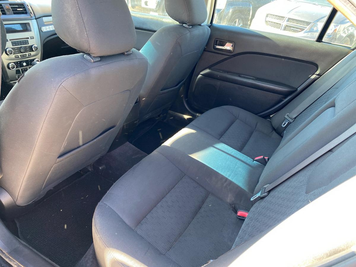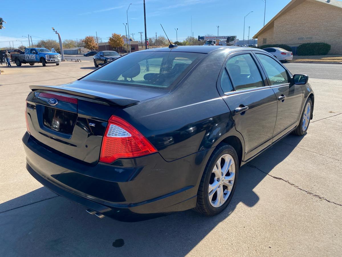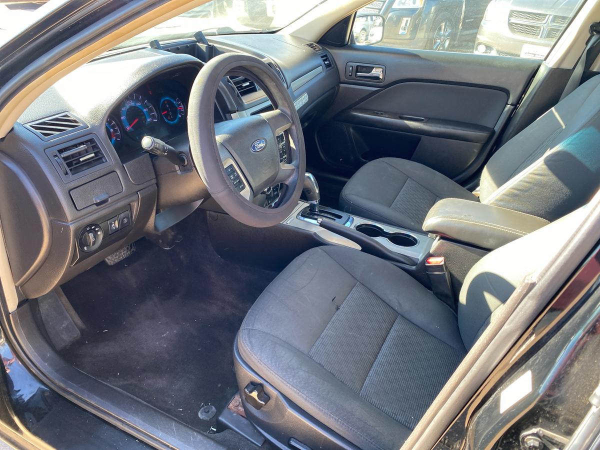 Buckle up and get ready to hit the road in style with this sleek Black 2012 Ford Fusion! This beauty is powered by a 2.5L 16V I4 Duratec engine, effortlessly cruising along with front-wheel drive and a smooth Pwr rack & pinion steering system with electric variable assist.Impress onlookers with the chrome front grille and dual exhaust with chrome tips, making a statement as you zip by under the glow of the automatic quad halogen headlamps. Front fog lamps add a touch of mystery to your nighttime drives while the solar tinted glass keeps you cool and collected under the hot sun.Inside, sink into the plush front bucket seats with lumbar support and enjoy the convenience of the front row center console for all your storage needs. The instrument cluster with a trip computer keeps you informed while the Pwr windows with driver one-touch up/down and Pwr remote trunk release add a touch of luxury to your daily drives.Stay safe and secure with the AdvanceTrac (ESC) with brake actuated traction control and a full suite of airbags, including dual front airbags with an occupant classification system and side-impact airbags. Bring the whole crew along comfortably with the 60/40 split spring-assisted rear bench seat and take advantage of the LATCH system for the little ones.With features like the Perimeter anti-theft system, Tire pressure monitoring system, and SOS post-crash alert system, you can hit the road with peace of mind in this trusty Ford Fusion. So, grab the keys and get ready for adventures galore - whether it's a daily commute or a weekend road trip, this 2012 Ford Fusion is ready to take you there in style and comfort! Visit Martin's Auto Sales online to see more pictures of this vehicle or call us at 806-773-4554 today to schedule your test drive.