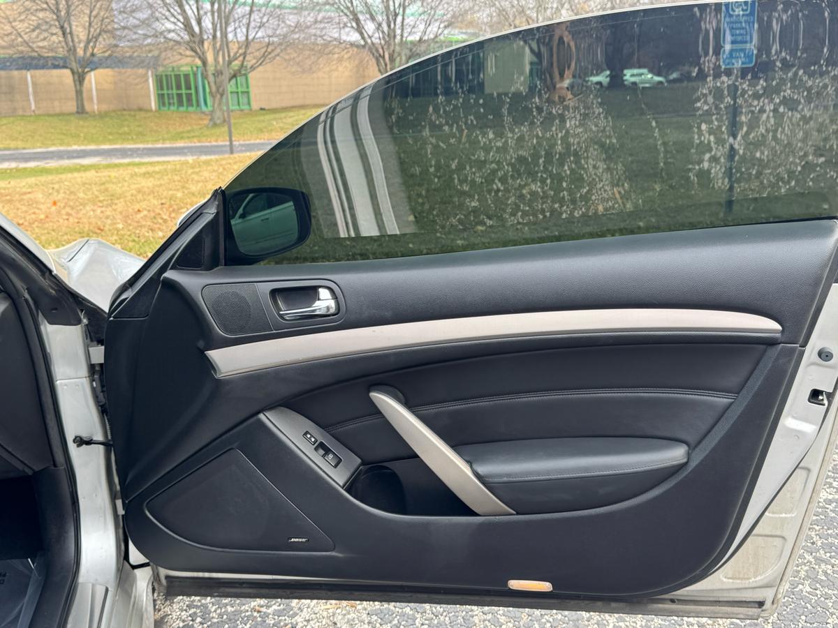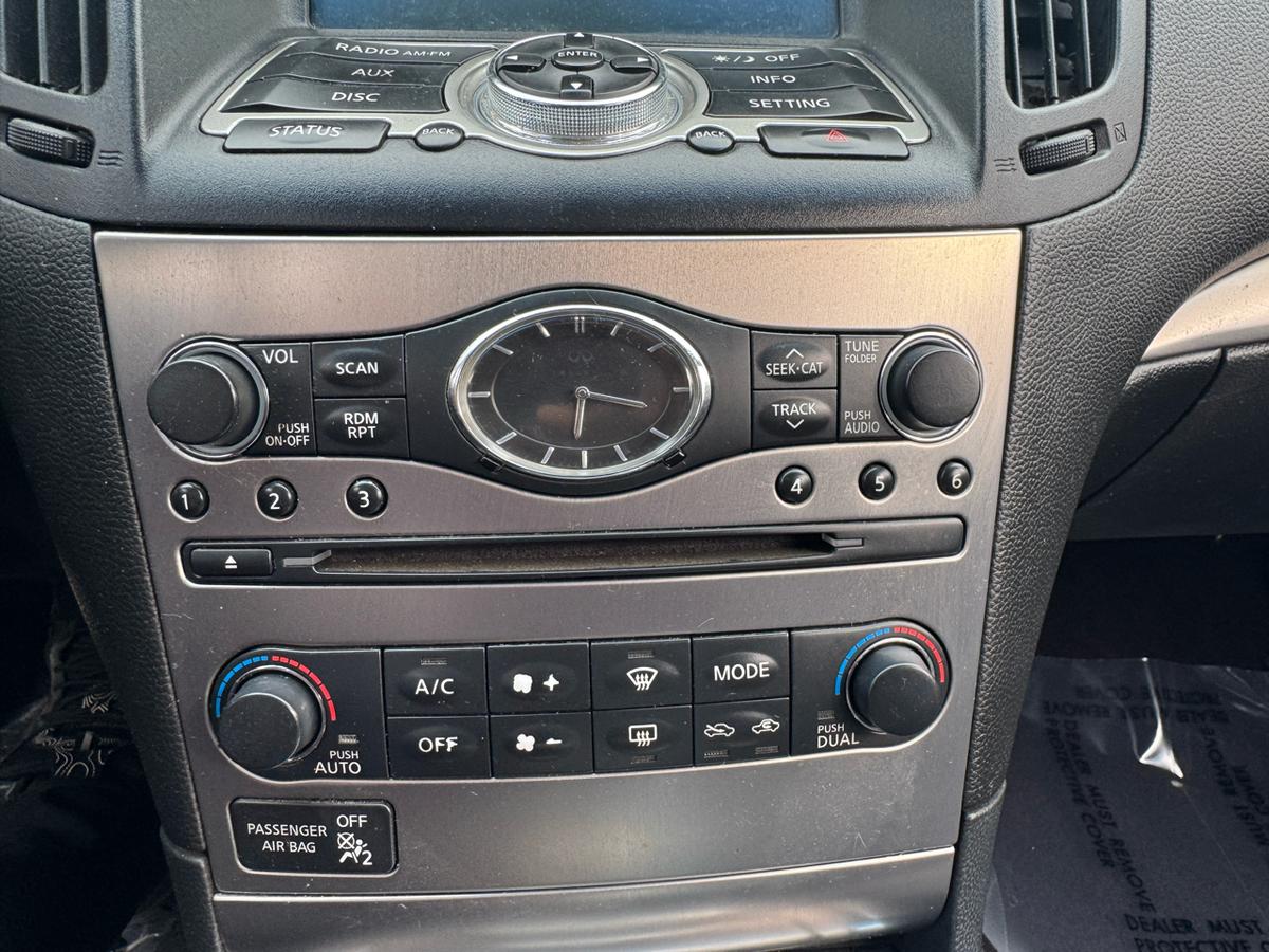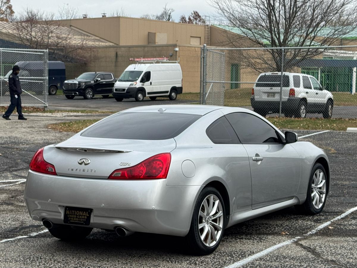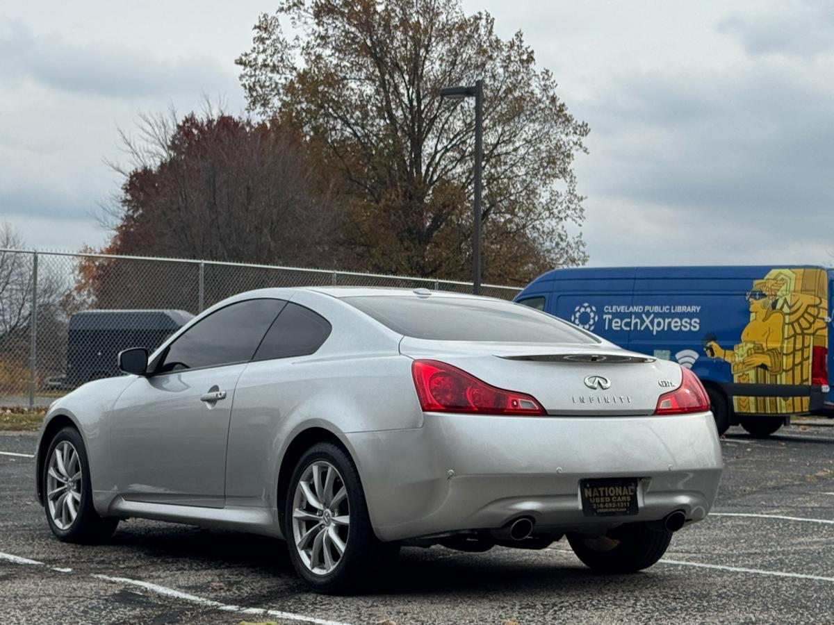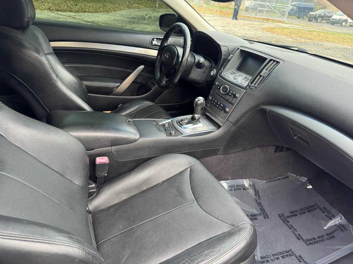 Step into luxury and excitement with this sleek Charcoal 2012 Infiniti G Coupe. This car is not just a mode of transportation; it's a statement. With its eye-catching alloy wheels and automatic headlights, you'll turn heads wherever you go. Slip into the driver's seat and feel the supple leather hug you as you settle in for a thrilling ride. Whether you're cruising down the highway or navigating city streets, the traction control and stability control system will keep you on course with confidence. And don't worry about safety, with front and side airbags ready to protect you at all times. The powerful engine roars to life as you hit the open road, with the CD player providing the perfect soundtrack to your journey. With power windows, keyless entry, and a stylish leather steering wheel, convenience is at your fingertips. You'll be the envy of the neighborhood with this Infiniti G Coupe, promising both style and substance in one irresistible package. Visit National Used Cars Inc online at www.usedcars12.com to see more pictures of this vehicle or call us at 216-692-1311 today to schedule your test drive.