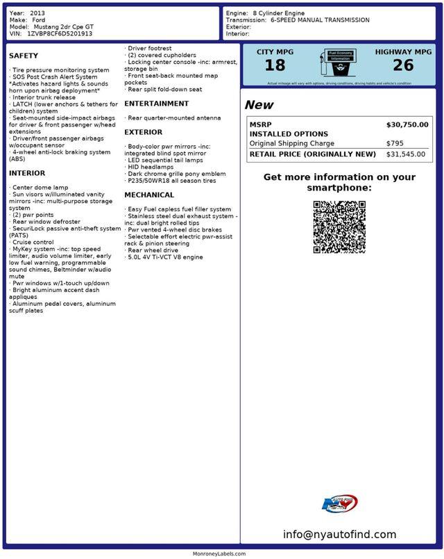 Take a look at this Blue 2013 Ford Mustang GT with Beige Leather Interior and only 82,231 miles. This muscle car is an exciting vehicle to experience. From the impressive wheels to the rush of driving it, this delivers powerful, cool and clean vibes all around. It is very well maintained with low mileage and has such eye catching looks and performance features. Come experience this incredible machine now. It comes equipped with a 5.0L 8-cylinder Engine paired to a 6-speed Manual Transmission, Navigation, Spoiler, Leather Interior, Dual Exhaust, LED Sequential Tail Lamps, HID Headlamps, Body Color Power Mirrors, Brembo Brakes, SVE Wheels, Cruise Control, Steering Wheel Controls, AM/FM Radio, Power Windows, Power Locks, Air Conditioning and so much more. Every NY Auto Find vehicle comes with a complimentary Limited Warranty and a Carfax Vehicle Report. Our vehicles are priced to sell quickly. Please call to check availability and schedule an appointment. -