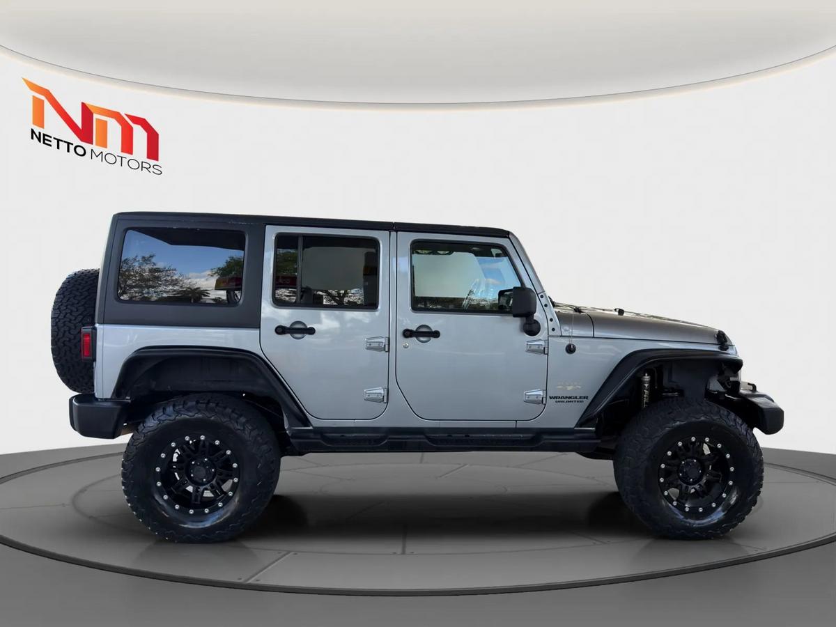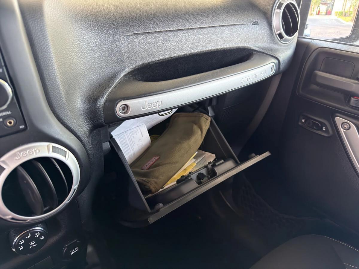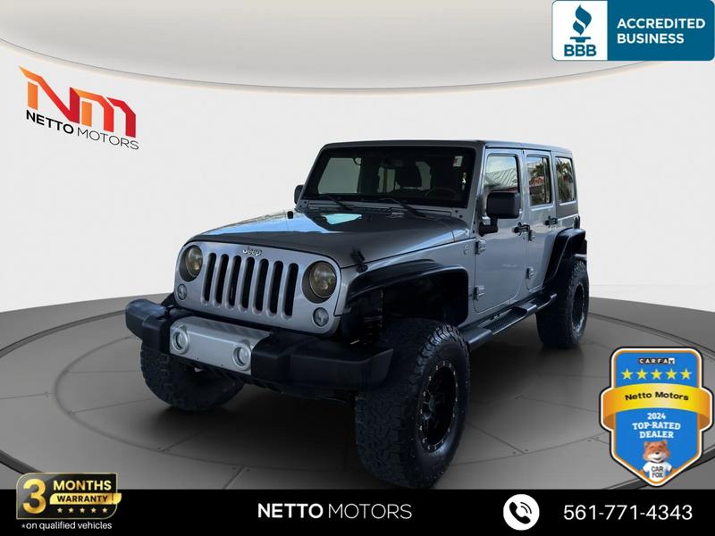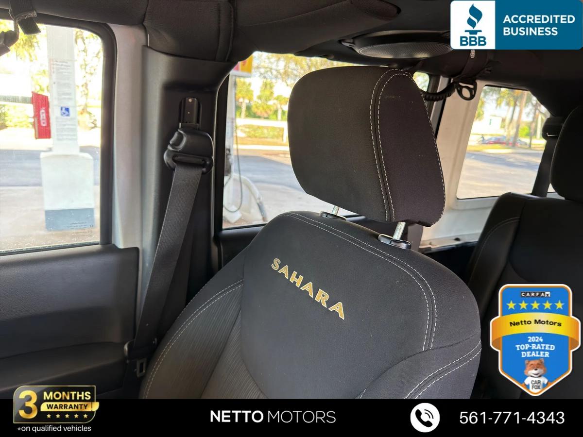 Vehicle Details2014 Jeep Wrangler Sahara 4WD V6 3.6L, West Palm Beach FLThis 2014 Jeep Wrangler Sahara delivers iconic off-road capability paired with comfortable daily driving. Powered by a robust 3.6L V6 gasoline engine and proven 4WD, the Jeep Wrangler Sahara confidently handles Florida beaches, coastal roads, and rugged trails. The spacious cabin includes premium cloth/leather-trim seating and convenient features designed for modern driving.Key features include Hands Free Bluetooth for seamless phone calls and audio streaming, a user-friendly infotainment system, power windows and locks, and cruise control for longer drives. The Sahara trim adds refined touches like body-color accents, upgraded wheels, and unique interior trim, giving you the rugged Jeep Wrangler look with enhanced comfort.This Jeep Wrangler has been carefully inspected and maintained to meet high safety and performance standards. With its combination of a powerful V6 engine, 4WD traction, and everyday amenities, it's an excellent choice for buyers seeking a versatile SUV that performs on and off road.Located in West Palm Beach, FL, this 2014 Jeep Wrangler Sahara is competitively priced and represents the best price available for this model in the area. Contact us to schedule a test drive or request vehicle history and inspection details. Take advantage of this value-priced Jeep Wrangler before it's gone.EquipmentThis Jeep Wrangler has four wheel drive capabilities. Anti-lock brakes are standard on this 2014 Jeep Wrangler . Maintaining a stable interior temperature in this mid-size suv is easy with the climate control system. This model features cruise control for long trips. Electronic Stability Control is one of many advanced safety features on the vehicle. This unit has a V6, 3.6L high output engine. The fog lights cut through the weather so you can see what's ahead. This vehicle is equipped with a gasoline engine. Bluetooth technology is built into the Jeep Wrangler, keeping your hands on the steering wheel and your focus on the road. The spacious cabin accommodates your family and friends in comfort. Take it to the mountains or the beach. it can handle it all.PackagesQuick Order Package 23G Connectivity Group: Vehicle Information Center; Remote USB Port; Uconnect Voice Command with Bluetooth; Tire Pressure Monitoring Display Black 3-Piece Hard Top 3.73 Rear Axle Ratio Anti-Spin Differential Rear Axle **Equipment listed is based on original vehicle build and subject to change. Please confirm the accuracy of the included equipment by calling the dealer prior to purchase.**Additional InformationWE SHIP NATIONALLY AND WORLDWIDE--PLEASE ASK ABOUT OUR LOW RATES***although every reasonable effort has been made to ensure the accuracy of the information contained on this site, absolute accuracy cannot be guaranteed. This site, and all information and materials appearing on it, are presented to the user as is without warranty of any kind, either expressed or implied. All vehicles are subject to prior sale. Although we try to remove SOLD units as quickly as possible, due to our high inventory turnover it is possible that some may remain online so please call in advance to ensure that the vehicle of interest is in stock. Price does not include applicable tax, title, license, electronic processing and/or documentation fees, and destination charges. While great effort is made to ensure the accuracy of the information on this site, errors do occur so please verify information with a customer service representative. This is easily done by calling us at 561-771-4343 or by visiting us at the dealership.