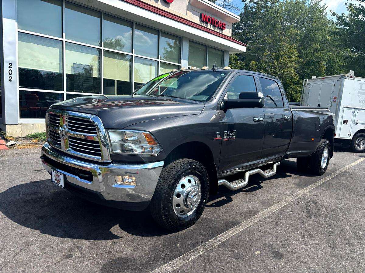 2014 RAM 3500HD CREW CAB DRW 4X4 BIG HORN 6.7L CUMMINS DIESEL SHARP TRUCK WITH LOW MILES!!!! POWER LOCKS WINDOWS AND MIRRORS, POWER CLOTH SEATS W/ FULL CENTER CONSOLE, U-CONNECT BLUETOOTH DISPLAY, NAVIGATION, BACK-UP CAMERA, AUTOMATIC LIGHTS W/ FOGS, STEERING WHEEL CONTROLS, CLIMATE CONTROL, EXHAUST BRAKE, FACTORY TOW PACKAGE/ TRAILER BRAKE CONTROLLER, ALL SEASON FLOOR MATS, LUND RUNNING BOARDS, DEDRO TONNEAU COVER, SPRAY IN BEDLINER, FACTORY PUCK SYSTEM FOR GOOSENECK, 17 ALCOA WHEELS WRAPPED IN RECENT FIRESTONE TIRES, SHARP 2014 RAM 3500HD 4X4 CREW CAB DRW BIG HORN 6.7L CUMMINS DIESEL WITH ONLY 124K MILES!!! CREDIT UNION FINANCING AVAILABLE INQUIRE TODAY 603-952-4500!!!! Visit Mastriano Motors LLC online at www.mastrianomotors.com to see more pictures of this vehicle or call us at 603-952-4500 today to schedule your test drive.