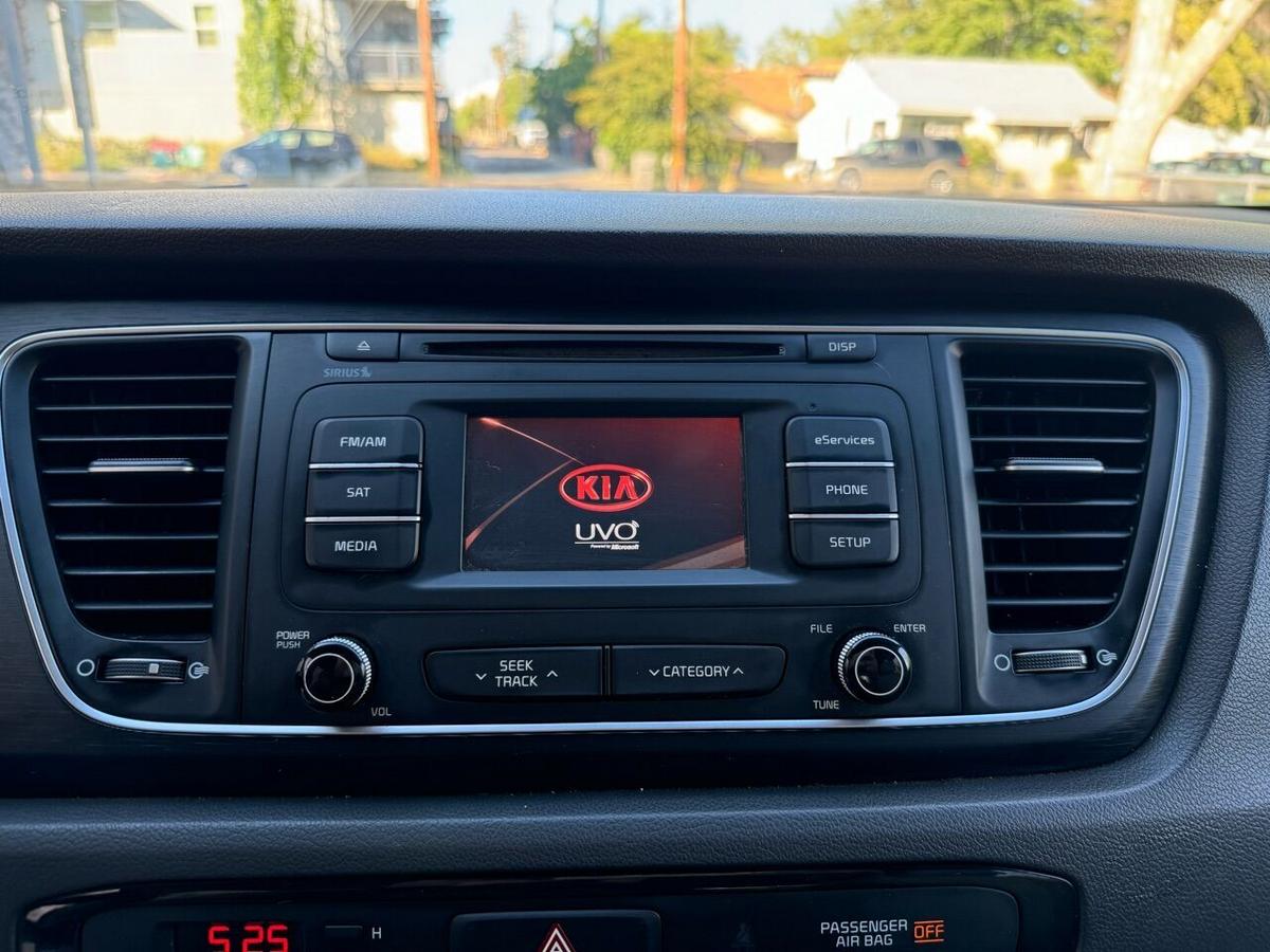 Door Handle Color - Body-Color, Front Bumper Color - Body-Color, Grille Color - Black, Mirror Color - Body-Color, Rear Bumper Color - Body-Color, Rear Spoiler Color - Body-Color, Window Trim - Black, Rear Spoiler - Roofline, Rear Trunk/Liftgate - Liftgate, Side Door Type - Dual Manual Sliding, Exhaust Tip Color - Stainless Steel, Turns Lock-To-Lock - 3.2, Floor Material - Carpet, Front Air Conditioning, Front Air Conditioning Zones - Single, Shift Knob Trim - Urethane, Steering Wheel Trim - Urethane, Assist Handle - Front, Assist Handle - Rear, Center Console - Front Console With Armrest And Storage, Cruise Control, Cupholders - 12, Cupholders - Front, Cupholders - Rear, Multi-Function Remote - Keyless Entry, Multi-Function Remote - Trunk Release, Power Steering, Steering Wheel - Tilt And Telescopic, Steering Wheel Mounted Controls - Audio, Steering Wheel Mounted Controls - Phone, Storage - Accessory Hook, Storage - Door Pockets, Storage - Front Seatback, Storage - Sunglasses Holder, Power Outlet(S) - 12v Cargo Area, Power Outlet(S) - Two 12v Front, Conversation Mirror, Vanity Mirrors - Dual Illuminating, Multi-Function Remote - Panic Alarm, Overhead Console - Front, Steering Wheel Mounted Controls - Cruise Control, Cargo Area Light, Reading Lights - Front, Reading Lights - Rear, One-Touch Windows - 1, Power Windows - Lockout Button, Rearview Mirror - Manual Day/Night, Abs - 4-Wheel, Axle Ratio - 3.04, Braking Assist, Cornering Brake Control, Electronic Brakeforce Distribution, Front Brake Diameter - 12.6, Front Stabilizer Bar, Front Suspension Classification - Independent, Power Brakes, Rear Brake Diameter - 11.9, Rear Suspension Classification - Independent, Rear Suspension Type - Multi-Link, Stability Control, Traction Control, Hill Holder Control, Front Shock Type - Gas, Front Spring Type - Coil, Front Suspension Type - Lower Control Arms, Rear Shock Type - Gas, Rear Spring Type - Coil, Front Struts - Macpherson, Front Brake Type - Ventilated Disc, Rear Brake Type - Disc, Alternator - 150 Amps, Battery - Maintenance-Free, Battery Rating - 660 Cca, Antenna Type - Diversity, Antenna Type - Mast, Auxiliary Audio Input - Ipod/Iphone, Auxiliary Audio Input - Jack, Auxiliary Audio Input - Usb, Clock, Digital Odometer, External Temperature Display, Fuel Economy Display - Mpg, Fuel Economy Display - Range, In-Dash Cd - Single Disc, Multi-Function Display, Radio - Am/Fm, Radio - Touch Screen Display, Radio Data System, Satellite Radio - Siriusxm, Speed Sensitive Volume Control, Trip Odometer, Warnings And Reminders - Low Fuel Level, Watts - 172, Auxiliary Audio Input - Bluetooth, Wireless Data Link - Bluetooth, In-Dash Cd - Mp3 Playback, Total Speakers - 6, Gauge - Tachometer, Infotainment - Uvo, Radio - Voice Operated, Infotainment Screen Size - 4.2 In., Warnings And Reminders - Coolant Temperature Warning, Warnings And Reminders - Lamp Failure, Warnings And Reminders - Low Oil Pressure, Hands-Free Phone Call Integration - Voice Operated, Headlights - Auto On/Off, Headlights - Led, Tire Pressure Monitoring System, Spare Tire Mount Location - Inside, Spare Tire Size - Temporary, Spare Wheel Type - Steel, Tire Type - All Season, Wheels - Aluminum Alloy, Front Wipers - Variable Intermittent, Power Windows - Front, Rear Privacy Glass, Rear Wiper - Intermittent, Rear Wiper - With Washer, Roof Rails - Silver, Solar-Tinted Glass - Front, Window Defogger - Rear, Oem Roof Height - Undefined, Active Head Restraints - Dual Front, Child Seat Anchors - Latch System, Crumple Zones - Front, Front Airbags - Dual, Side Airbags - Front, Side Curtain Airbags - Front, Side Curtain Airbags - Third Row, Anti-Theft System - Alarm, Pre-Collision Warning System - Audible Warning, Side Curtain Airbags - Rear, Airbag Deactivation - Occupant Sensing Passenger, Power Door Locks - Auto-Locking, Side Mirror Adjustments - Power, Side Mirror Adjustments - Power Folding, Side Mirrors - Integrated Turn Signals, Camera System - Rearview, Rearview Monitor - In Dash,