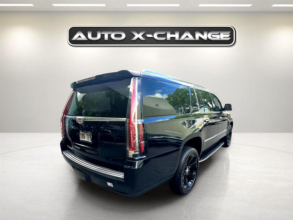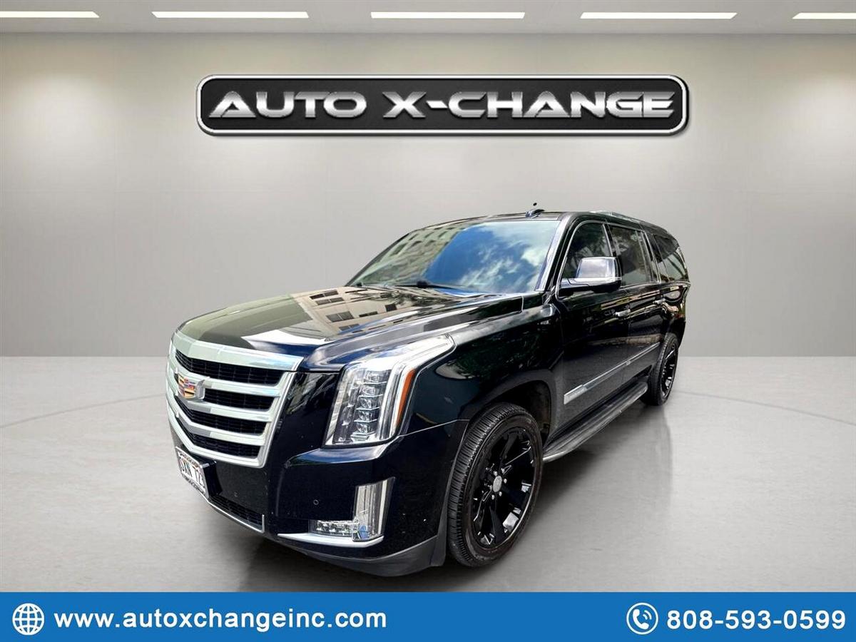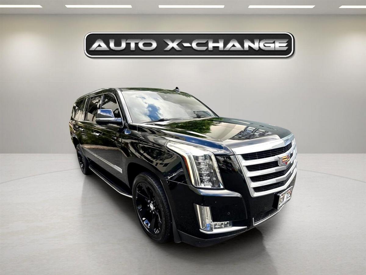Ready for the ultimate road trip companion? This sleek Black 2016 Cadillac Escalade ESV is the epitome of luxury and power, boasting a 6.2L V8 engine that roars to life with 420 horsepower. With its Magnetic Ride Control suspension, this Escalade glides effortlessly down the road, while the hands-free power liftgate makes loading up for your adventure a breeze. Step inside the spacious interior and you'll find yourself surrounded by top-of-the-line features, from the Bose Centerpoint Surround Sound system to the heated steering wheel - perfect for those chilly mornings. Stay connected on the go with Bluetooth streaming and wireless charging, while the Head-Up Display keeps important information right in your line of sight. Safety is paramount in this Escalade, with features like Front and Rear Park Assist, Surround Vision, Lane Change Alert, and Side Blind Zone Alert keeping you protected on every journey. And with the availability of a Carfax report, you can purchase with confidence knowing the vehicle's history is transparent. From city streets to open highways, this Cadillac Escalade ESV is ready to elevate your driving experience to new heights. Visit our website www.autoxchangeinc.com for more information and photos on this or any other of our vehicles or call us today for a test drive at 808-593-0599.