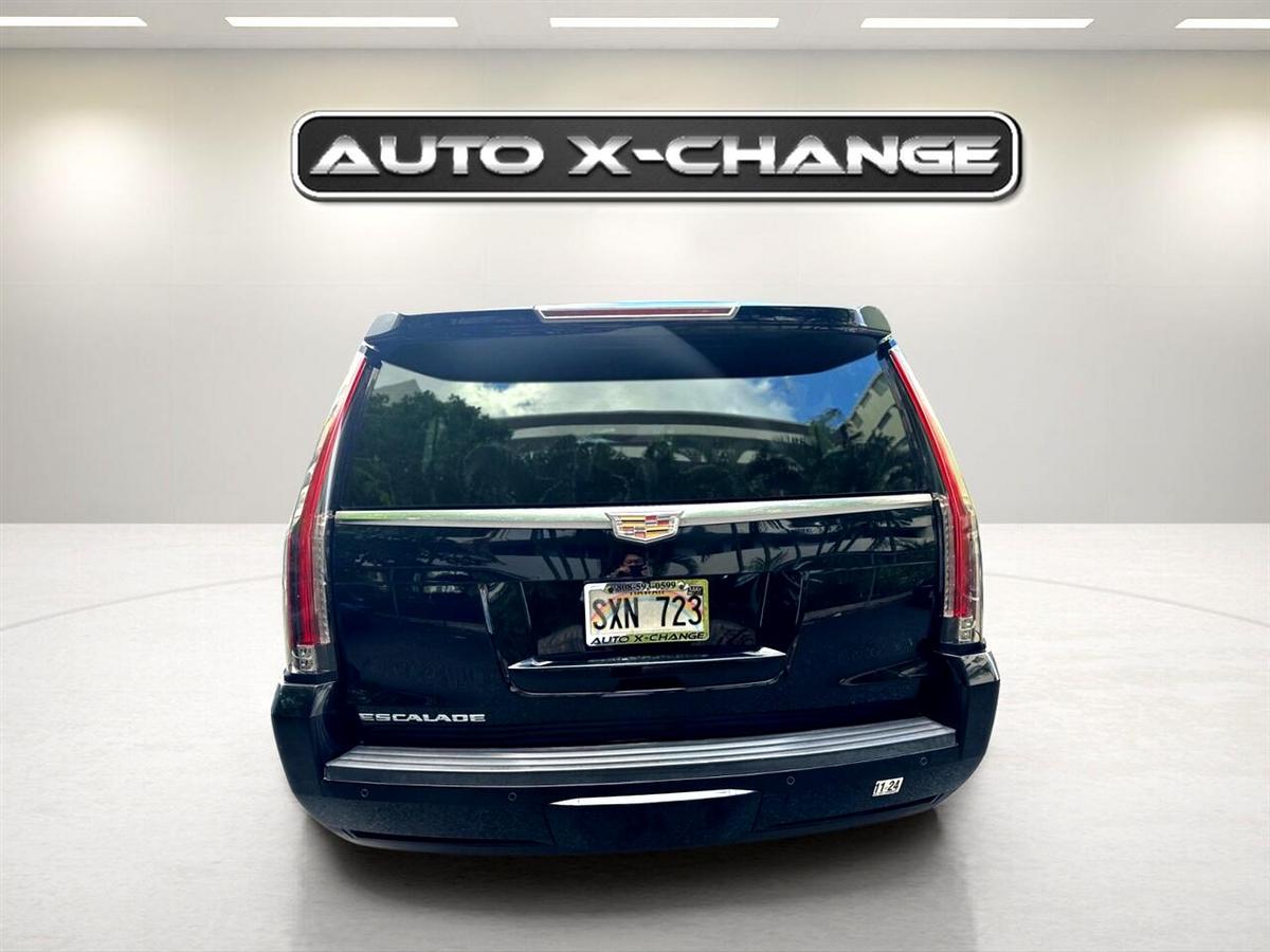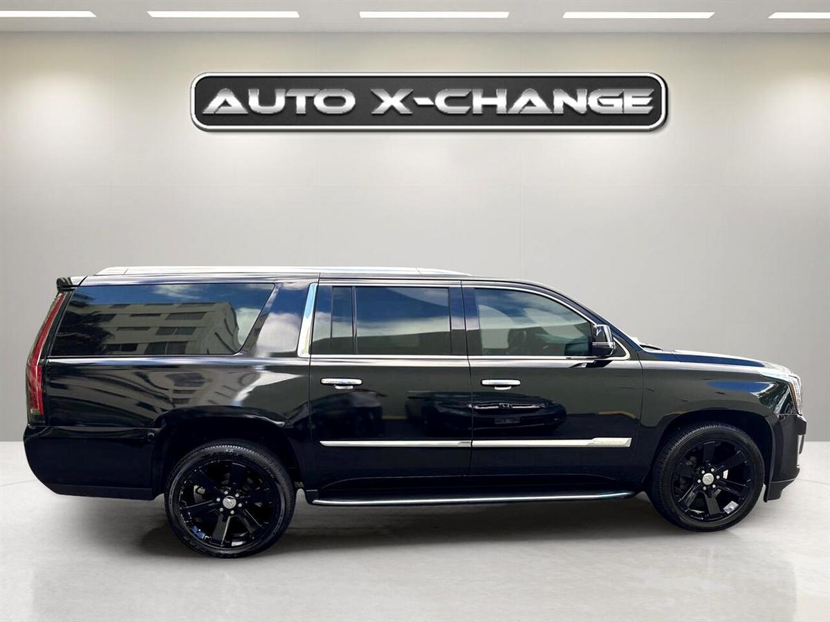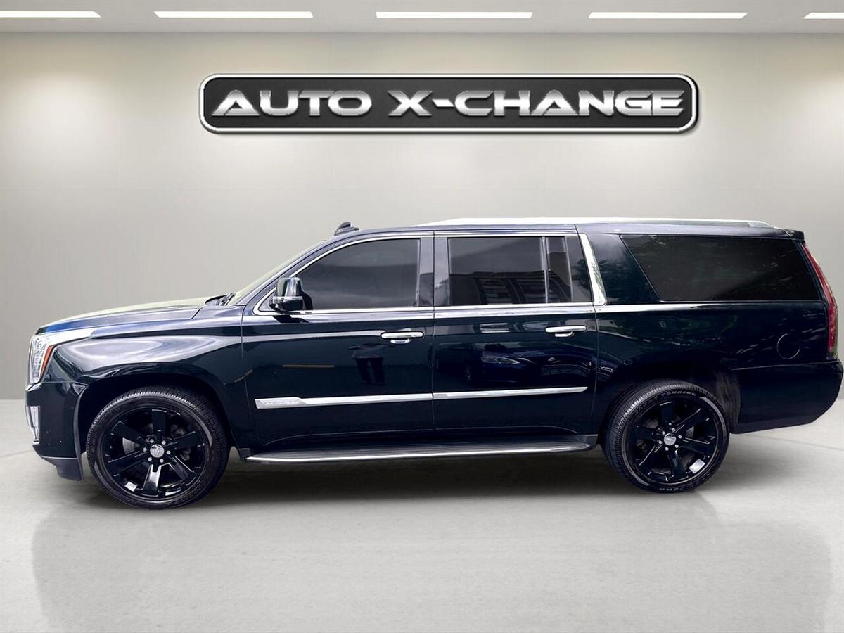 Ready for the ultimate road trip companion? This sleek Black 2016 Cadillac Escalade ESV is the epitome of luxury and power, boasting a 6.2L V8 engine that roars to life with 420 horsepower. With its Magnetic Ride Control suspension, this Escalade glides effortlessly down the road, while the hands-free power liftgate makes loading up for your adventure a breeze. Step inside the spacious interior and you'll find yourself surrounded by top-of-the-line features, from the Bose Centerpoint Surround Sound system to the heated steering wheel - perfect for those chilly mornings. Stay connected on the go with Bluetooth streaming and wireless charging, while the Head-Up Display keeps important information right in your line of sight. Safety is paramount in this Escalade, with features like Front and Rear Park Assist, Surround Vision, Lane Change Alert, and Side Blind Zone Alert keeping you protected on every journey. And with the availability of a Carfax report, you can purchase with confidence knowing the vehicle's history is transparent. From city streets to open highways, this Cadillac Escalade ESV is ready to elevate your driving experience to new heights. Visit our website www.autoxchangeinc.com for more information and photos on this or any other of our vehicles or call us today for a test drive at 808-593-0599.