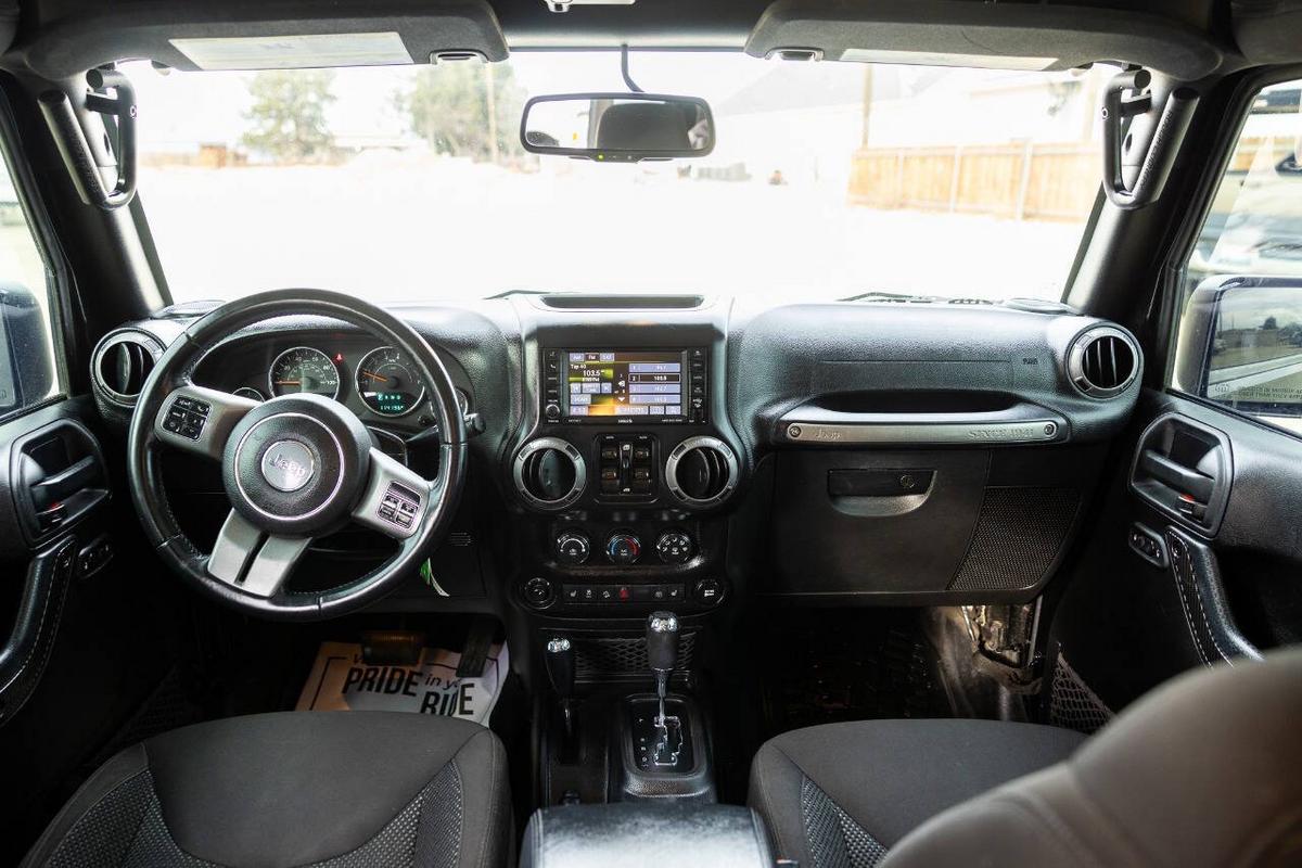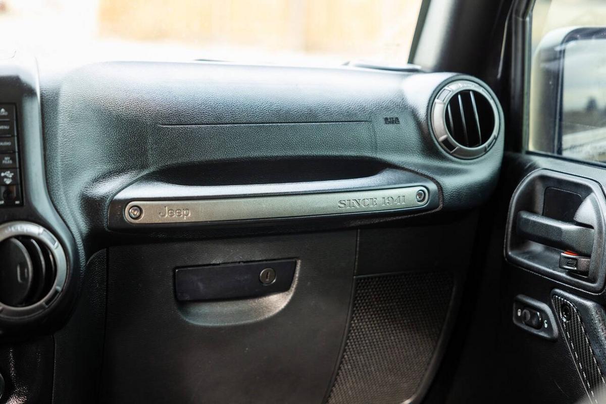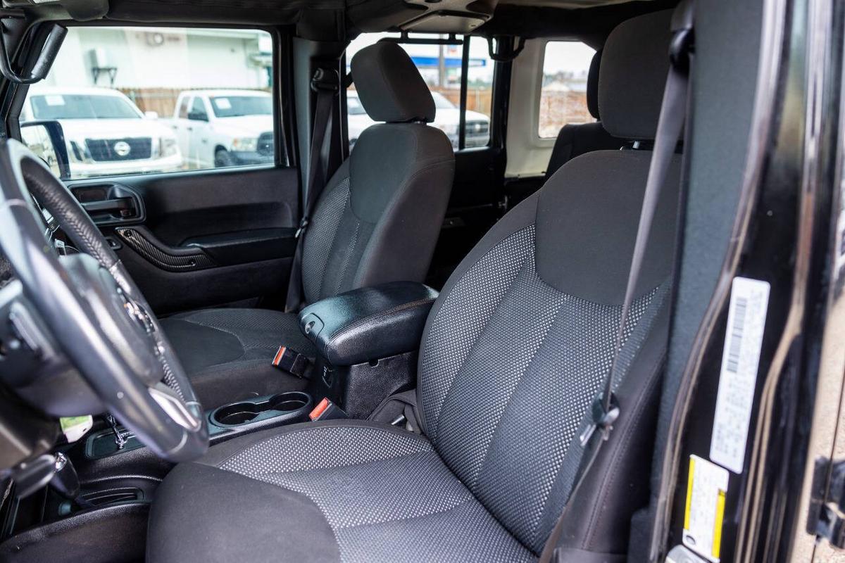 Beautiful blacked out jeep. This special edition (based on the Sport S) comes loaded with cool factory features: Fully blacked-out look: Satin black grille, 17 mid-gloss black wheels, black hood decal (Black Bear Pass trail theme), black taillamp guards, premium rock rails, and more for that stealthy vibe Powerful 3.6L Pentastar V6 (285 hp, 260 lb-ft torque) with automatic transmission and Command-Trac 4x4 (part-time 4WD with low range – perfect for off-road or snow) Black cloth Sedoso seats with sport mesh, leather-wrapped steering wheel, Iron Gray accents, all-weather slush mats Connectivity Group, Power Convenience Group, air conditioning, Bluetooth, premium audio, and more Removable Sunrider soft top (folds back easily for open-air fun), plus freedom panels if equipped Tow-ready, trail-rated capability with great ground clearance and Goodyear tires (or whatever's on it now) It's the perfect mix of classic Jeep style, off-road prowess, and family-friendly 4 doors/5 seats. Fully serviced and inspected at Huntsman Wholesale.