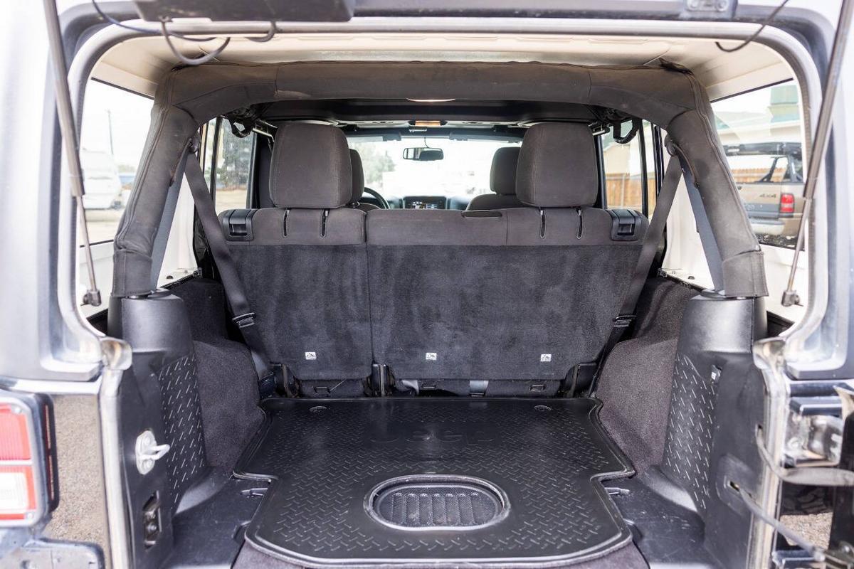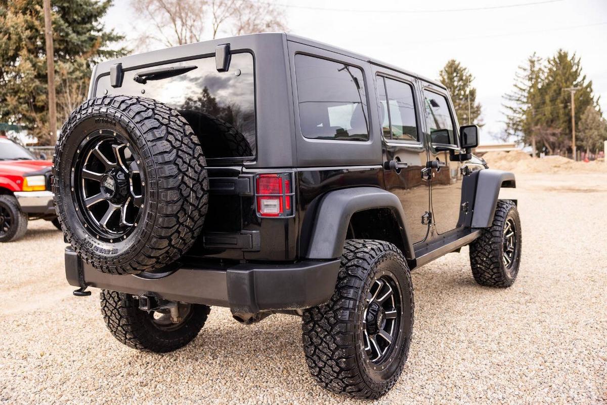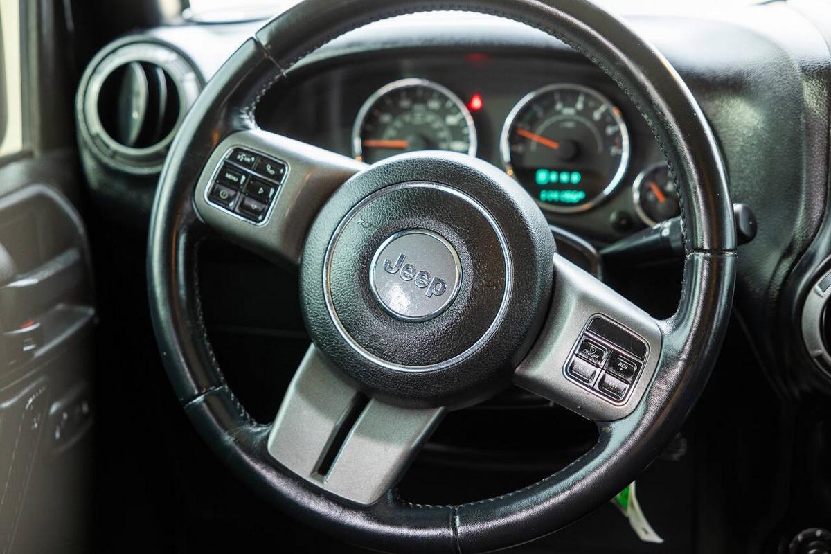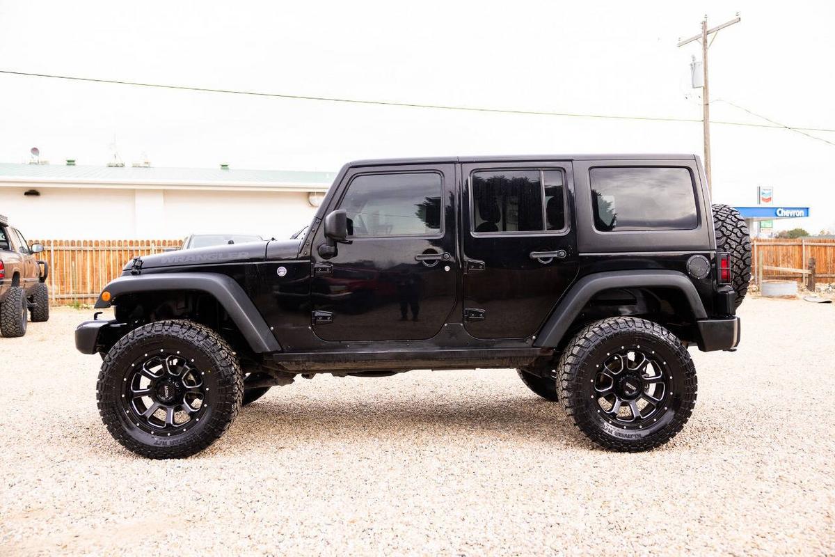 Beautiful blacked out jeep. This special edition (based on the Sport S) comes loaded with cool factory features: Fully blacked-out look: Satin black grille, 17 mid-gloss black wheels, black hood decal (Black Bear Pass trail theme), black taillamp guards, premium rock rails, and more for that stealthy vibe Powerful 3.6L Pentastar V6 (285 hp, 260 lb-ft torque) with automatic transmission and Command-Trac 4x4 (part-time 4WD with low range – perfect for off-road or snow) Black cloth Sedoso seats with sport mesh, leather-wrapped steering wheel, Iron Gray accents, all-weather slush mats Connectivity Group, Power Convenience Group, air conditioning, Bluetooth, premium audio, and more Removable Sunrider soft top (folds back easily for open-air fun), plus freedom panels if equipped Tow-ready, trail-rated capability with great ground clearance and Goodyear tires (or whatever's on it now) It's the perfect mix of classic Jeep style, off-road prowess, and family-friendly 4 doors/5 seats. Fully serviced and inspected at Huntsman Wholesale.