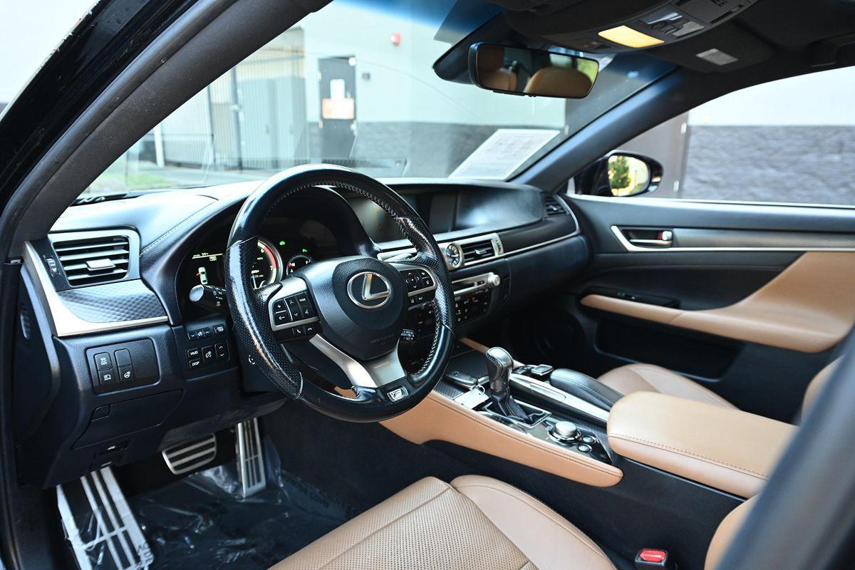 Automotive Brilliance is moments away with our 2016 Lexus GS 450h Sedan with the F Sport Pack is amazing in Obsidian! Powered by a 3.5 Liter V6 that offers 338hp connected an electric hybrid motor tethered to an innovative CVT for easy passing power. You'll be enthused with this Rear Wheel Drive Sedan's brilliant handling and appreciate nearly 34mpg on the highway. F Sport sets the tone for pure performance in your GS 450h with its athletic stance that is perfectly complemented by 19-inch six spoke alloy wheels, F Sport Brakes, and LED headlights. Rendered with sophistication and attention to detail, 450h leather 16-way driver's seat, Naguri aluminum trim, leather shifter and steering wheel, LFA style gauges, and Aluminum pedals to name a few. The posh cabin of our Hybrid features a beautiful sunroof, keyless entry/ignition, a rearview camera, and ambient lighting. Enjoy next-level connectivity with the Lexus Remote Touch interface, a prominent display, Bluetooth® phone/audio, full-color navigation, Siri integration, and a surround-sound audio system with CD, available satellite/HD radio, USB interface and auxiliary audio jack. You're driving in style now! With Lexus, peace of mind comes standard behind the wheel of our GS F Sport. Enjoy ABS, stability/traction control, front knee airbags, full-length side curtain airbags, front and rear side airbags, blind-spot monitoring, rear cross-traffic alert, front-seat active head restraints, and emergency telematics. With its excellent safety ratings, refined style, excellent efficiency and over-all competence, our GS 450h is an ideal traveling companion. Save this Page and Call for Availability. We Know You Will Enjoy Your Test Drive Towards Ownership! .All advertised prices exclude government fees and taxes, any finance charges, any dealer document preparation charge, and any emission testing charge. While we try to make sure that all prices posted here are accurate at all times, we cannot be responsible for typographical and other errors that may appear on the site. We make every effort to provide you the most accurate, up-to-the-minute information; however it is your responsibility to verify with the Dealer that all details listed are accurate. The dealership is not responsible for typographical, pricing, product information, advertising or shipping errors. Advertised prices and available quantities are subject to change without notice. All rates and offers are dependent on bank approval, which varies based on applicant's credit as well as the vehicle.