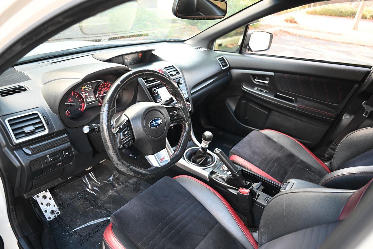 Prepare for an adrenaline rush behind the wheel of our 2016 Subaru WRX STI AWD Sedan brought to you in eye-catching Crystal White Pearl. Crafted to the highest standards, powered by a TurboCharged 2.5 Liter 4 Cylinder that offers 305hp while connected to a fun-to-drive 6 Speed Manual transmission for rapid acceleration. Our sure-footed All Wheel Drive sedan can move to 60mph in an astonishing 5.1 seconds while still achieving nearly 23mpg on the highway. With front and rear limited-slip differentials, driver-selectable modes for the center differential, an aggressively tuned suspension, Brembo brakes, fog lamps, hood scoop, and rear stabilizer bars, you have a machine built for fun. Inside our WRX STI, supportive heated sports seats provide all-day comfort. You'll appreciate the convenience of full power accessories, automatic climate control, 60/40 split folding rear seats and a leather-wrapped steering wheel. Additionally, the WRX STI includes Bluetooth® connectivity, smartphone integration, a prominent touchscreen, and a great sound system with an iPod hookup so your tunes can accompany you everywhere you care to go. With a reputation for safety and durability, our Subaru is complete with stability control, ABS, active front head restraints, a backup camera, and advanced airbags. Every day is an adventure with your WRX STI! Print this page and call us Now-We Know You Will Enjoy Your Test Drive Towards Ownership! .All advertised prices exclude government fees and taxes, any finance charges, any dealer document preparation charge, and any emission testing charge. While we try to make sure that all prices posted here are accurate at all times, we cannot be responsible for typographical and other errors that may appear on the site. We make every effort to provide you the most accurate, up-to-the-minute information; however it is your responsibility to verify with the Dealer that all details listed are accurate. The dealership is not responsible for typographical, pricing, product information, advertising or shipping errors. Advertised prices and available quantities are subject to change without notice. All rates and offers are dependent on bank approval, which varies based on applicant's credit as well as the vehicle.