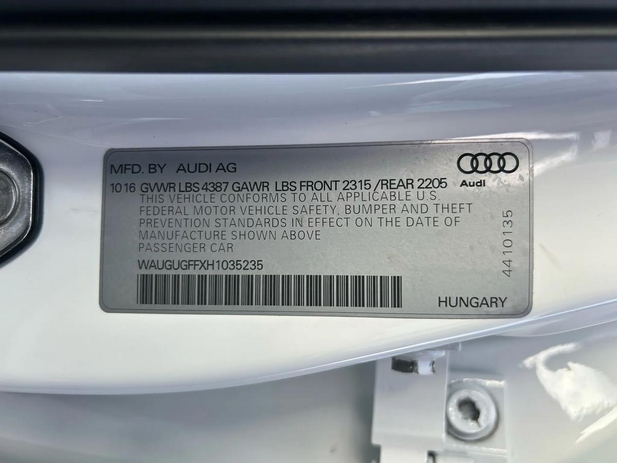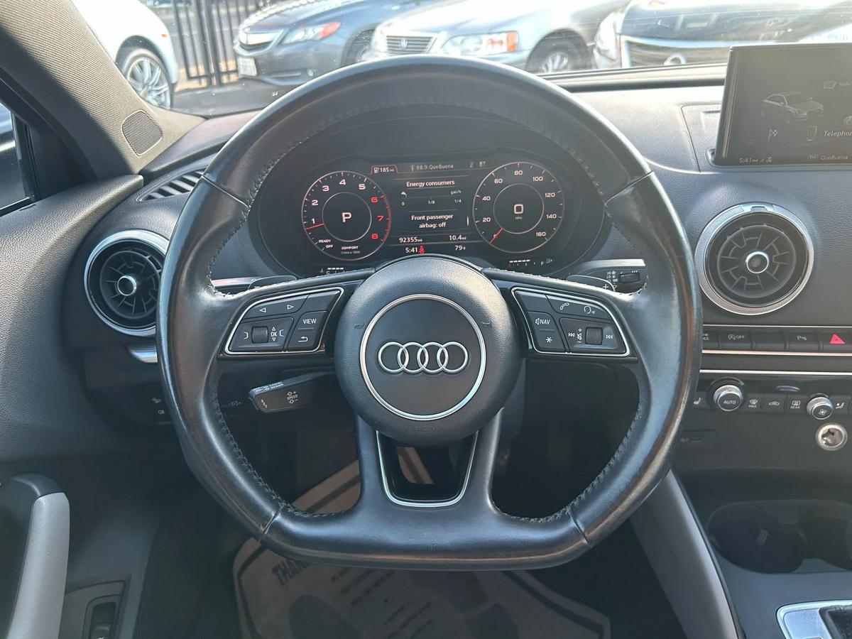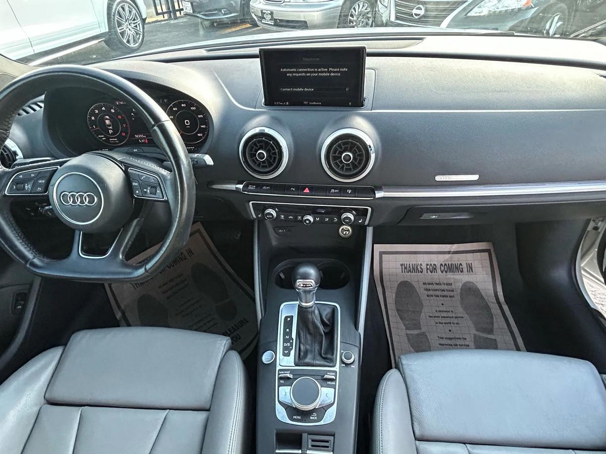 is proud to present this exceptional vehicle!?? **2017 Audi A3 Premium Plus Sedan 4D - FWD**Experience performance, comfort, and reliability in this 2017 Audi A3.Equipped with a 4-cylinder 4-Cyl, Turbo, 2.0 Liter, Auto, 7-Spd S Tronic transmission, and FWD system, it's built to handle your daily drives and weekend adventures with ease.---**?? Vehicle Highlights** Mileage: 92,355 Engine: 4-Cyl, Turbo, 2.0 Liter, Gasoline, 220 HP Drivetrain: FWD Exterior Color: White Interior Color: Black Body Style: Sedan VIN: WAUGUGFFXH1035235 Stock #: AUD5235---**?? Pricing** Price: $$13,995 Ask about financing options. We work with all credit types.---**? Features & Options**4-Cyl, Turbo, 2.0 Liter, Auto, 7-Spd S Tronic, FWD, Premium Plus Pkg, Hill Hold Assist Control, Traction Control, Electronic Stability Control, ABS (4-Wheel), Alarm System, Keyless Entry, Keyless Start, Air Conditioning, Power Windows, Power Door Locks, Cruise Control, Remote Trunk Release, Power Steering, Tilt & Telescoping Wheel, AM/FM/HD Radio, CD/MP3 (Single Disc), SiriusXM Satellite, Bluetooth Wireless, Parking System Plus, F&R Parking Sensors, Backup Camera, Heated Seats, Dual Power Seats, Leather, Panoramic Moon Roof, Xenon Headlamps, Daytime Running Lights, Fog Lights, Rear Spoiler, Alloy Wheels---? **We Make Car Buying Simple**All vehicles are inspected, serviced, and ready to drive.Trade-ins welcome Financing available