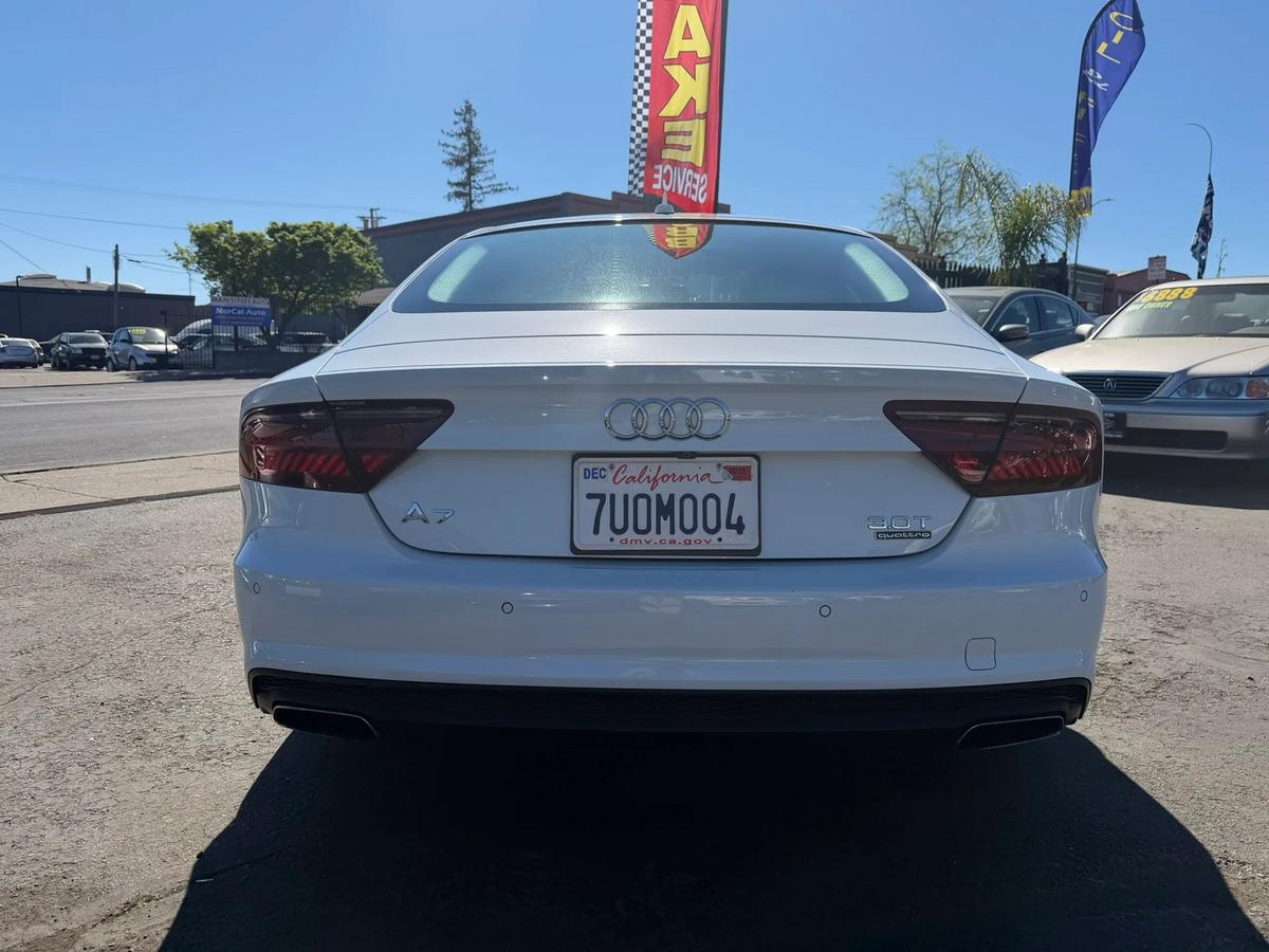 is proud to present this exceptional vehicle!?? **2017 Audi A7 Competition Prestige Sedan 4D - AWD**Experience performance, comfort, and reliability in this 2017 Audi A7.Equipped with a 6-cylinder V6, Sprchgd, 3.0L, Auto, 8-Spd Tiptronic transmission, and AWD system, it's built to handle your daily drives and weekend adventures with ease.---**?? Vehicle Highlights** Mileage: 118,907 Engine: V6, Sprchgd, 3.0L, Gasoline, 340 HP Drivetrain: AWD Exterior Color: White Interior Color: Black Body Style: Sedan VIN: WAUW3AFCXHN054507 Stock #: AUD4507---**?? Pricing** Price: $$21,995 Ask about financing options. We work with all credit types.---**? Features & Options**Power Door Locks, Air Conditioning, Dual Air Bags, Power Close Doors, Electromechanical Steering, Heated Seats, Cruise Control, Air Conditioning, Rear, AWD, Premium Wheels, Side Air Bags, Bose Premium Sound, Daytime Running Lights, Head-Up Display, AM/FM/HD Radio, Park Assist, Dual Power Seats, F&R Parking Sensors, Tilt & Telescoping Wheel, F&R Head Curtain Air Bags, Alarm System, Rear Spoiler, LED Headlamps, Sun Roof (Sliding), Power Tailgate Release, Traction Control, Knee Air Bags, Blind-Spot Alert, Keyless Entry, CD/MP3 (Single Disc), SiriusXM Satellite, Electronic Stability Control, Backup Camera, Power Windows, Auto, 8-Spd Tiptronic, Navigation System, Keyless Start, Leather, ABS (4-Wheel), V6, Sprchgd, 3.0L, Bluetooth Wireless, Audi connect---? **We Make Car Buying Simple**All vehicles are inspected, serviced, and ready to drive.Trade-ins welcome Financing available