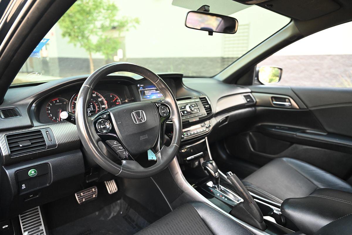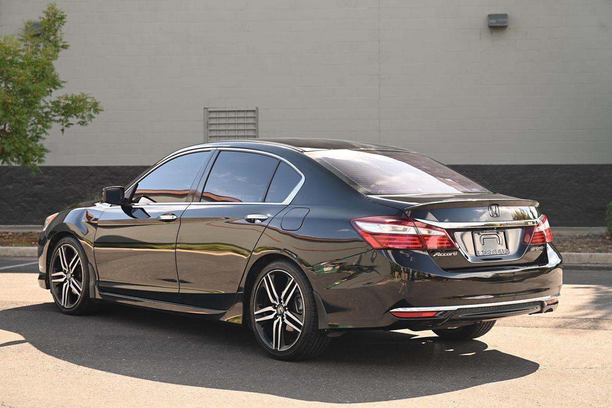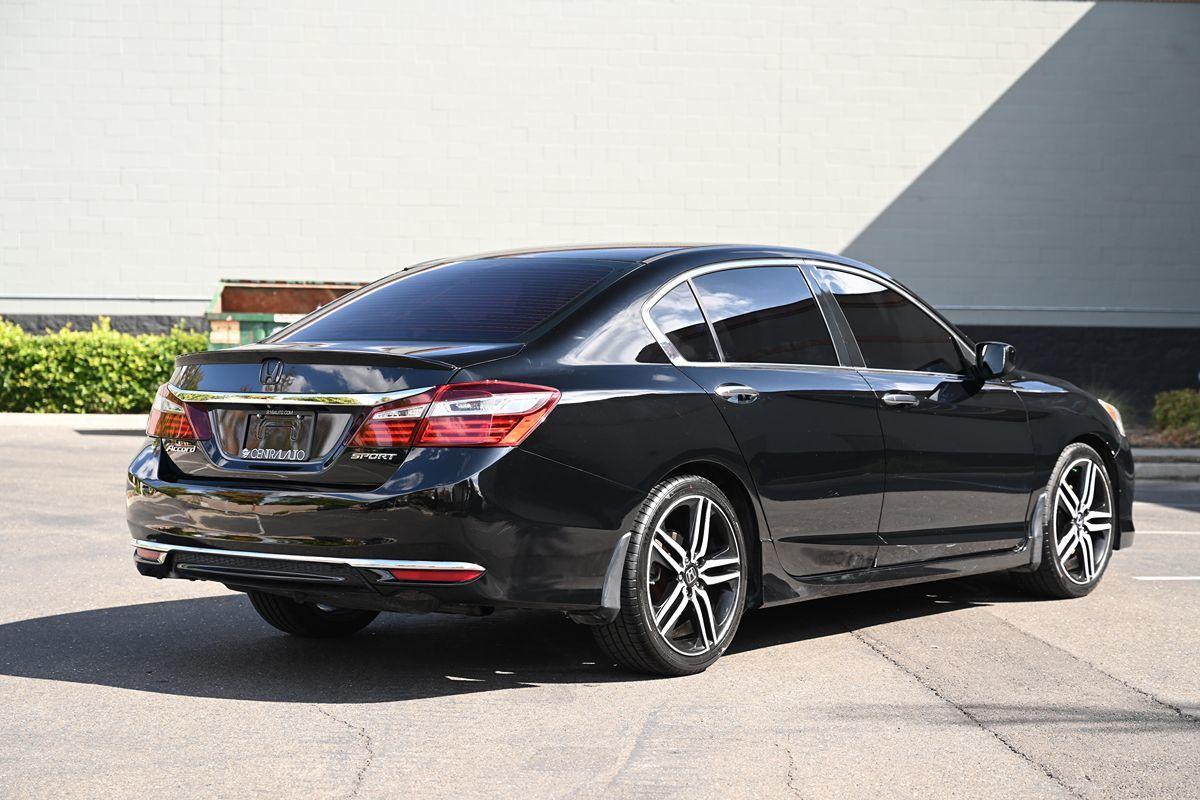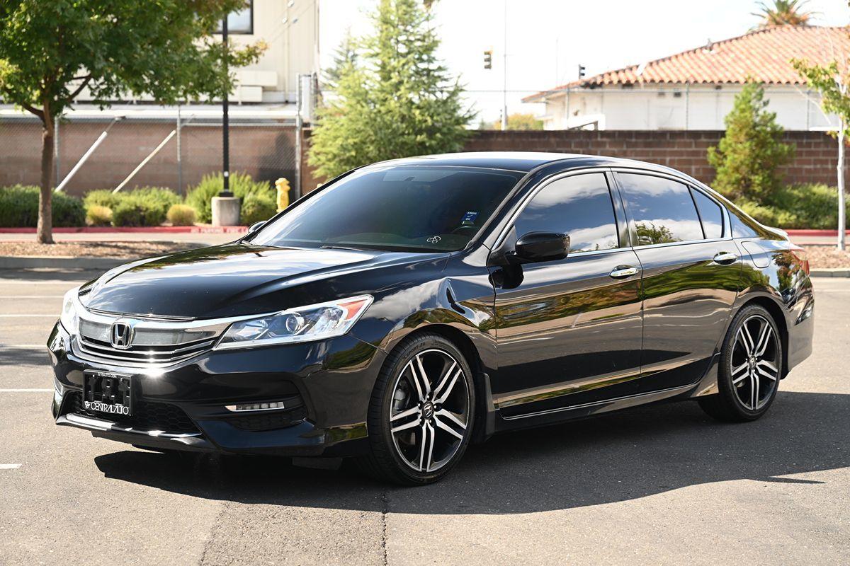Our 2017 Honda Accord Sport Sedan is pouring on the charm in Crystal Black Pearl! Powered by our 2.4 Liter 4 Cylinder that offers 189hp paired with a CVT for easy passing. Highly comfortable and a pleasure to own and drive, our Front Wheel Drive sedan continually sets the benchmark for all other family sedans as it rewards its owners with nearly 34mpg on the road. Immediately eye-catching and altogether irresistible, our Sport exudes classic good looks with modern sophistication. Take notice of the beautiful alloy wheels, LED fog lights, and aggressive grille. The Sport interior is a haven of comfort and refinement as it has been crafted with your needs and demands in mind. Find your comfort in the 10-way power driver's seat as you take note of amenities such as a multi-angle rearview camera, Bluetooth® Handsfree Link, and Streaming Audio, a 60/40 split fold-down rear seatback, and a leather-wrapped steering wheel. This thoroughly modern machine is going to impress you at every turn! Not only is our Honda an exceptional blend of performance, efficiency, and amenities, but it also enjoys a sterling reputation for safety with ABS, stability/traction control, active front head restraints, front-seat side airbags, and side curtain airbags. This Accord Sport sedan is a smart choice all-around! Save this Page and Call for Availability. We Know You Will Enjoy Your Test Drive Towards Ownership! .All advertised prices exclude government fees and taxes, any finance charges, any dealer document preparation charge, and any emission testing charge. While we try to make sure that all prices posted here are accurate at all times, we cannot be responsible for typographical and other errors that may appear on the site. We make every effort to provide you the most accurate, up-to-the-minute information; however it is your responsibility to verify with the Dealer that all details listed are accurate. The dealership is not responsible for typographical, pricing, product information, advertising or shipping errors. Advertised prices and available quantities are subject to change without notice. All rates and offers are dependent on bank approval, which varies based on applicant's credit as well as the vehicle.