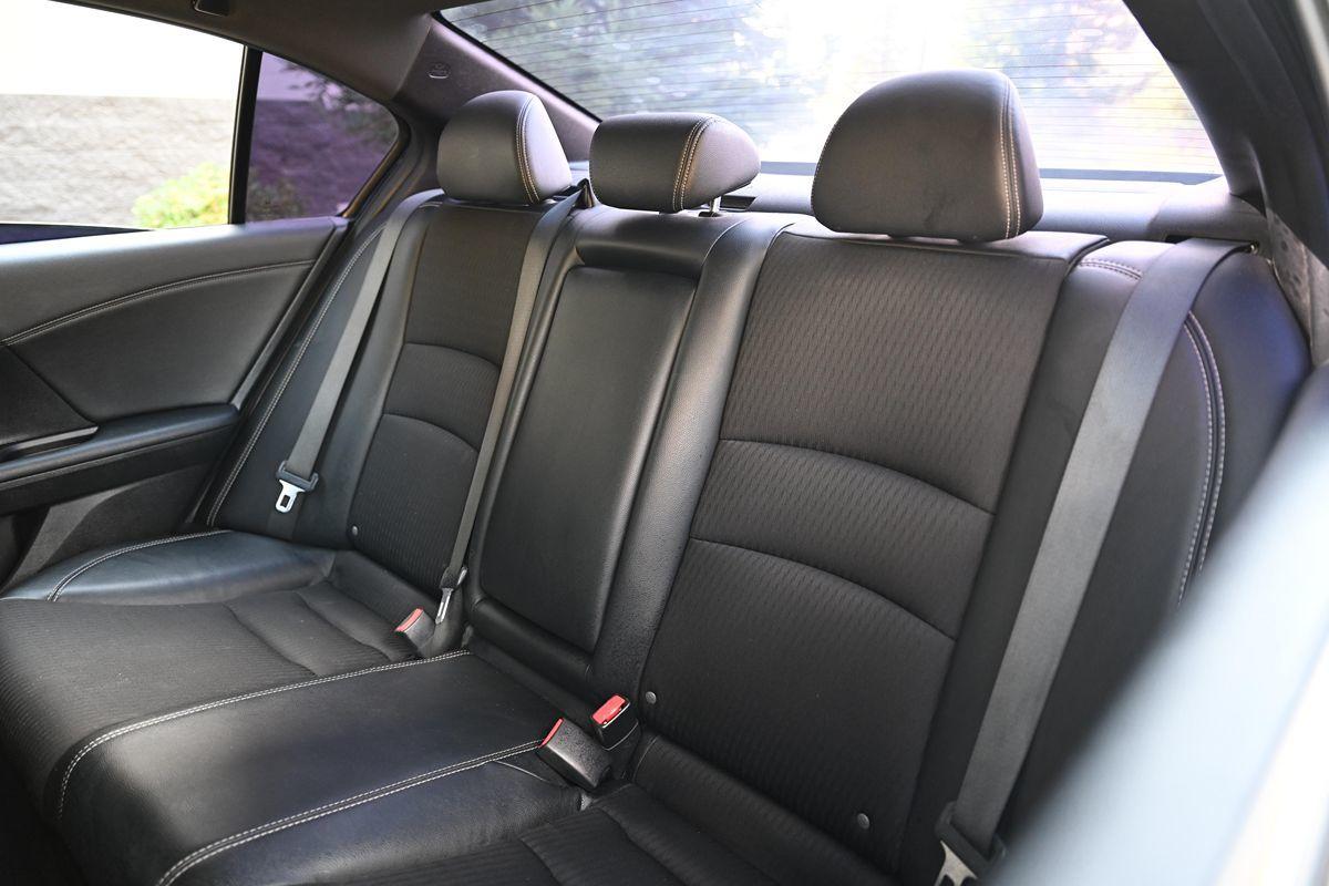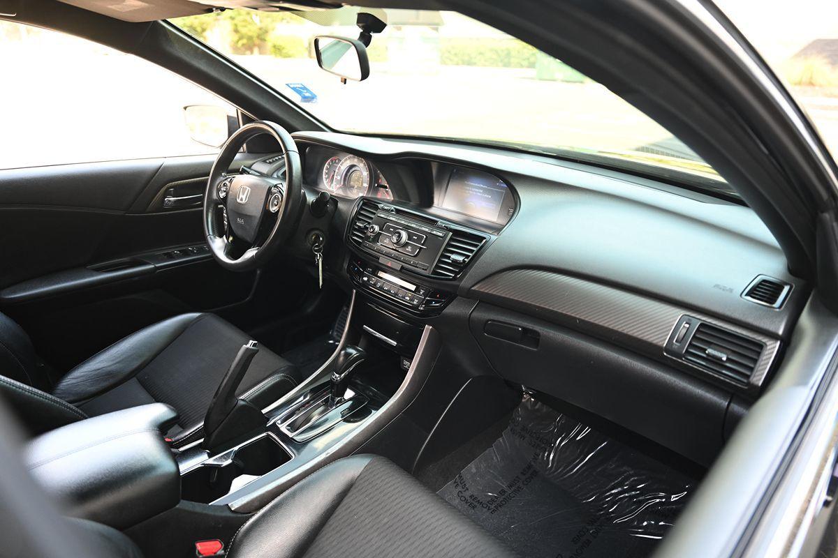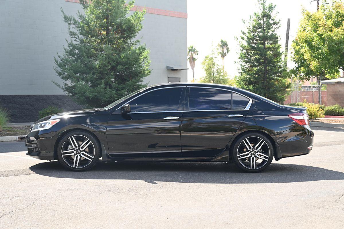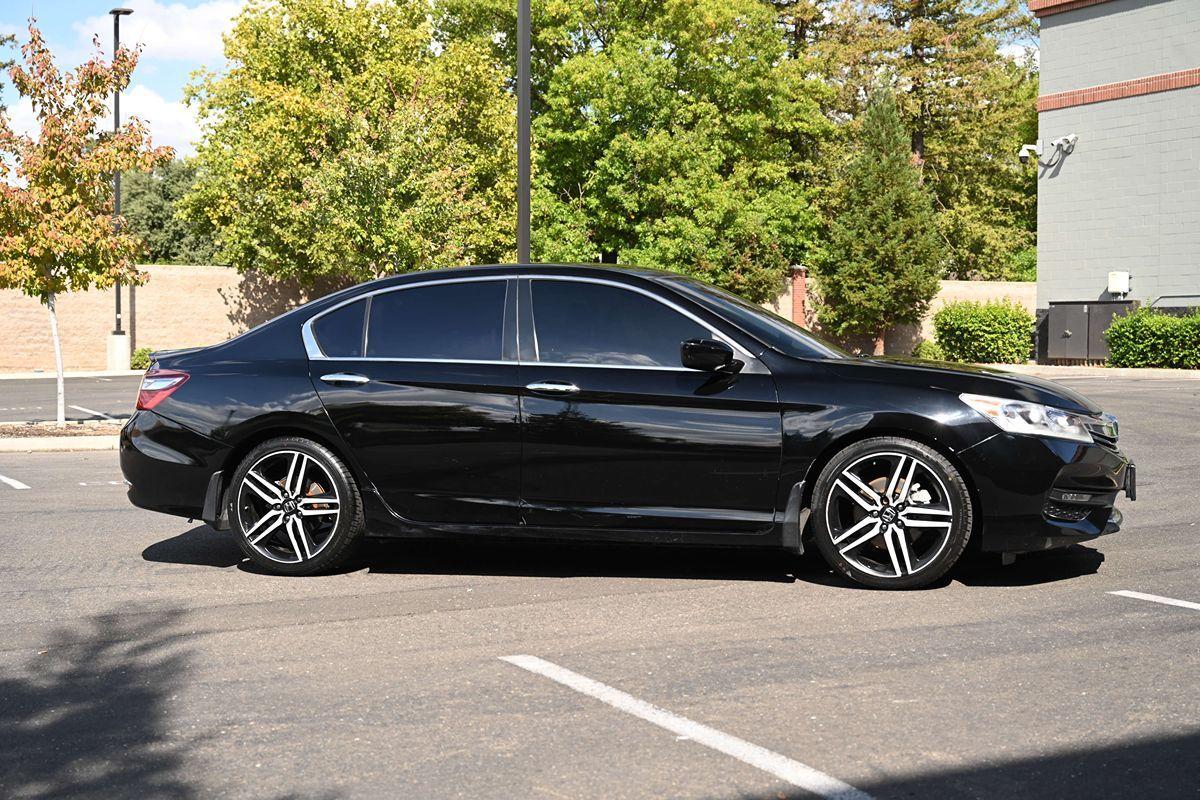 Our 2017 Honda Accord Sport Sedan is pouring on the charm in Crystal Black Pearl! Powered by our 2.4 Liter 4 Cylinder that offers 189hp paired with a CVT for easy passing. Highly comfortable and a pleasure to own and drive, our Front Wheel Drive sedan continually sets the benchmark for all other family sedans as it rewards its owners with nearly 34mpg on the road. Immediately eye-catching and altogether irresistible, our Sport exudes classic good looks with modern sophistication. Take notice of the beautiful alloy wheels, LED fog lights, and aggressive grille. The Sport interior is a haven of comfort and refinement as it has been crafted with your needs and demands in mind. Find your comfort in the 10-way power driver's seat as you take note of amenities such as a multi-angle rearview camera, Bluetooth® Handsfree Link, and Streaming Audio, a 60/40 split fold-down rear seatback, and a leather-wrapped steering wheel. This thoroughly modern machine is going to impress you at every turn! Not only is our Honda an exceptional blend of performance, efficiency, and amenities, but it also enjoys a sterling reputation for safety with ABS, stability/traction control, active front head restraints, front-seat side airbags, and side curtain airbags. This Accord Sport sedan is a smart choice all-around! Save this Page and Call for Availability. We Know You Will Enjoy Your Test Drive Towards Ownership! .All advertised prices exclude government fees and taxes, any finance charges, any dealer document preparation charge, and any emission testing charge. While we try to make sure that all prices posted here are accurate at all times, we cannot be responsible for typographical and other errors that may appear on the site. We make every effort to provide you the most accurate, up-to-the-minute information; however it is your responsibility to verify with the Dealer that all details listed are accurate. The dealership is not responsible for typographical, pricing, product information, advertising or shipping errors. Advertised prices and available quantities are subject to change without notice. All rates and offers are dependent on bank approval, which varies based on applicant's credit as well as the vehicle.