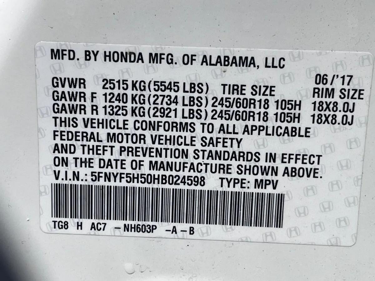 is proud to present this exceptional vehicle!?? **2017 Honda Pilot EX-L Sport Utility 4D - 2WD**Experience performance, comfort, and reliability in this 2017 Honda Pilot.Equipped with a 6-cylinder V6, i-VTEC, 3.5 Liter, Automatic, 6-Spd transmission, and 2WD system, it's built to handle your daily drives and weekend adventures with ease.---**?? Vehicle Highlights** Mileage: 100,393 Engine: V6, i-VTEC, 3.5 Liter, Gasoline, 280 HP Drivetrain: 2WD Exterior Color: White Interior Color: Black Body Style: SUV VIN: 5FNYF5H50HB024598 Stock #: HON4598---**?? Pricing** Price: $$17,888 Ask about financing options. We work with all credit types.---**? Features & Options**Power Door Locks, Air Conditioning, CD/MP3 (Single Disc), Dual Air Bags, HondaLink, Power Steering, Heated Seats, Cruise Control, Air Conditioning, Rear, Premium Wheels, Side Air Bags, Daytime Running Lights, AM/FM Stereo, Dual Power Seats, Tilt & Telescoping Wheel, F&R Head Curtain Air Bags, Alarm System, Hill Start Assist Control, Traction Control, LaneWatch, Keyless Entry, SiriusXM Satellite, Third Row Seat, Stability Control, 2WD, Fog Lights, Moon Roof, Backup Camera, Power Windows, Navigation System, Automatic, 6-Spd, Keyless Start, Leather, ABS (4-Wheel), V6, i-VTEC, 3.5 Liter, Bluetooth Wireless---? **We Make Car Buying Simple**All vehicles are inspected, serviced, and ready to drive.Trade-ins welcome Financing available