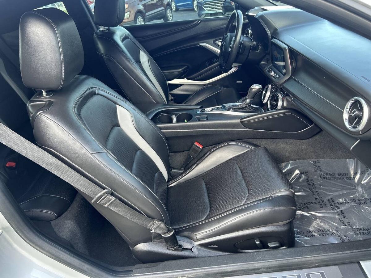 Introducing the sleek and powerful 2018 Chevrolet Camaro LT! This stunning sports car boasts a bold exterior design with clean lines and an aggressive front grille. Step inside and experience the spacious and modern interior, complete with premium materials and advanced technology. The Camaro LT is equipped with a 2.0L Turbo engine, delivering an exhilarating 275 horsepower and 295 lb-ft of torque. With an 8-speed automatic transmission, this vehicle offers smooth and responsive handling. Plus, the LT trim level comes with added features such as LED taillights, dual-zone automatic climate control, and a rearview camera. Don't miss your chance to own this iconic American muscle car. Stop by our showroom and take a test drive today!