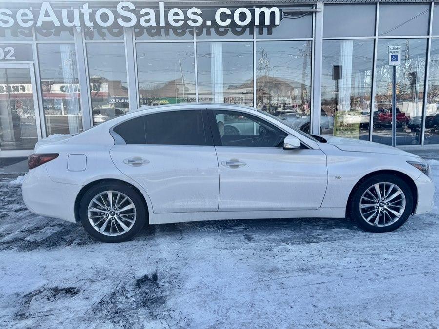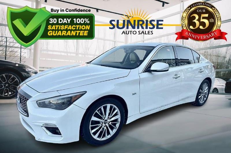 Welcome to Sunrise Auto Sales, where we,ve been putting people first since 1991. ALL VEHICLES INCLUDE: *125 MULTI-POINT INSPECTION *SYNTHETIC OIL CHANGE *NEW WIPER BLADES *ALL FLUIDS CHECKED / TOPPED OFF *BRAKES, ROTORS and TIRES EXCEED NYS REQUIREMENTS *FULL DETAIL INSIDE / OUT *30 DAY 100% SATISFACTION GUARANTEE Take a look at our, 2018 INFINITI Q50 3.0t LUXE AWD,a perfect blend of luxury, performance, and confidence. Powered by a strong 3.0-liter V6 engine and paired with an automatic transmission, this Q50 delivers smooth, responsive driving in all conditions thanks to all-wheel drive. It features a stunning white exterior complemented by a refined beige leather interior, plus a moonroof that adds an open-air driving experience. With 75,489 miles, this sporty luxury sedan is ready for the road. At family-owned Sunrise Auto Sales, we,re committed to a no-hassle buying experience and 100% customer satisfaction. That means honest, transparent pricing with no dealer fees, a 30-day satisfaction guarantee, and our exclusive Fresh Start financing program that helps nearly everyone get approved. Experience a better way to buy a car,visit Sunrise Auto Sales today.