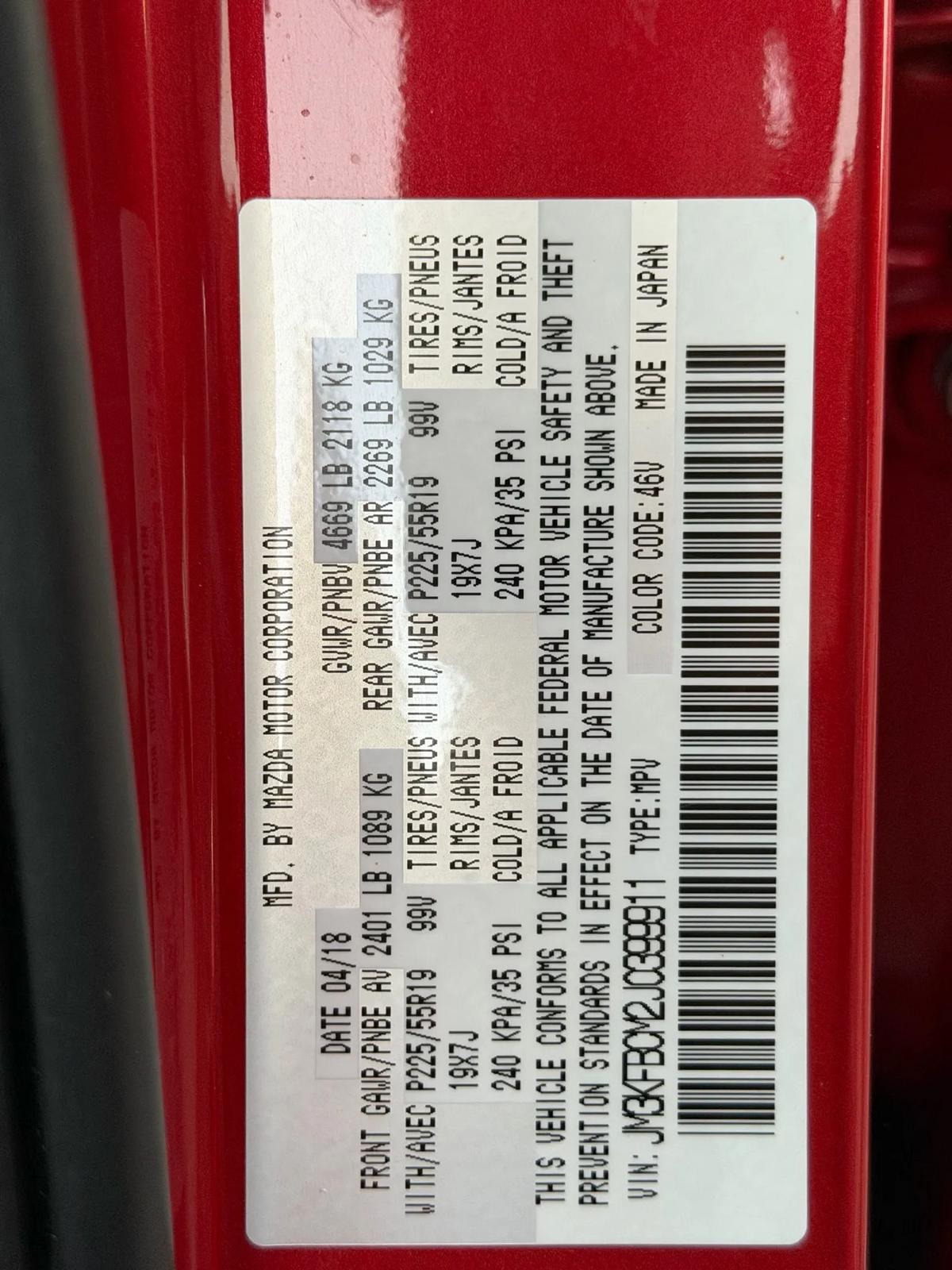 is proud to present this exceptional vehicle!?? **2018 MAZDA CX-5 Touring Sport Utility 4D - AWD**Experience performance, comfort, and reliability in this 2018 MAZDA CX-5.Equipped with a 4-cylinder 4-Cyl, SKYACTIV-G, 2.5L, Auto, 6-Spd Manual Spt transmission, and AWD system, it's built to handle your daily drives and weekend adventures with ease.---**?? Vehicle Highlights** Mileage: 78,308 Engine: 4-Cyl, SKYACTIV-G, 2.5L, Gasoline, 187 HP Drivetrain: AWD Exterior Color: Red Interior Color: Black Body Style: SUV VIN: JM3KFBCM2J0399911 Stock #: MAZ9911---**?? Pricing** Price: $$18,995 Ask about financing options. We work with all credit types.---**? Features & Options**4-Cyl, SKYACTIV-G, 2.5L, Auto, 6-Spd Manual Spt, AWD, Blind-Spot Monitor, Hill Launch Assist, Traction Control, Dynamic Stability Control, ABS (4-Wheel), Keyless Entry, Push Button Start, Air Conditioning, Power Windows, Power Door Locks, Radar Cruise Control, Power Steering, Tilt & Telescoping Wheel, AM/FM/HD Radio, Bluetooth Wireless, MAZDA CONNECT, Backup Camera, Dual Air Bags, Side Air Bags, F&R Head Curtain Air Bags, Lane Departure Warning System, Heated Seats, Power Seat, Daytime Running Lights, LED Headlamps, Roof Spoiler, Alloy Wheels---? **We Make Car Buying Simple**All vehicles are inspected, serviced, and ready to drive.Trade-ins welcome Financing available