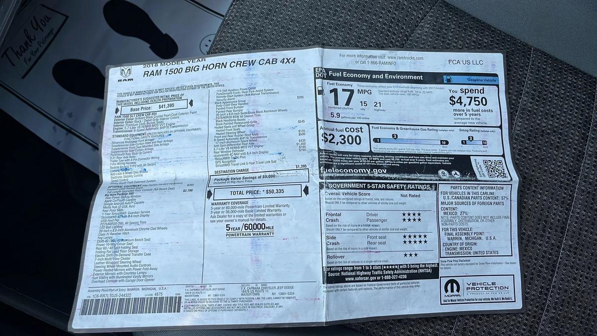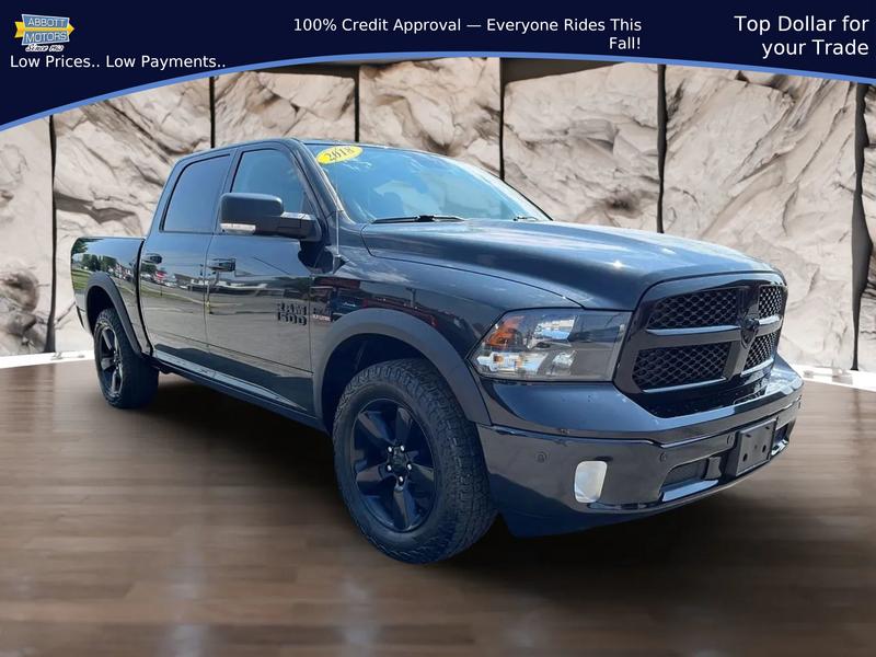 2018 Ram 1500 Crew Cab Big Horn Pickup 4D 5 1/2 ft Pickup 4WD V8, HEMI, 5.7 Liter 92,637 Abbott Motors 1645 Abbott Rd, Lackawanna, NY 14218 (716) 828-1500Unwrap Pure Performance This Christmas: 2018 Ram 1500 Big Horn Crew Cab!Celebrate the holidays with the thrilling power and bold style of this 2018 Ram 1500 Crew Cab Big Horn! Finished in sleek black inside and out, this pickup is engineered for enthusiasts who crave exhilarating drives and commanding presence. The automatic 8-speed transmission paired with a robust 8-cylinder engine promises dynamic performance and responsiveness that will ignite your passion for driving. Get ready to conquer every road and make this Christmas unforgettable with a truck that truly stands out. This outstanding Ram 1500 comes with a clean Autocheck reportno accidents reportedgiving you extra peace of mind as you chase excitement this holiday season. Now available for only $21,995 with just 92,637 miles, it's the perfect time to treat yourself to a high-performance pickup. Seize our limited-time festive offers and make your Christmas legendary behind the wheel of a true enthusiast's truck!Easy Financing - 100% Credit ApprovalApply Online for Auto Financing at Abbott Motors, Lackawanna, NYON SALE NOW! Premium Ram 1500 Crew Cab Big Horn Pickup 4D 5 1/2 ft Pickup V8, HEMI, 5.7 Liter, Fully Serviced, Clean AutoCheck History Report-No accidents. Has warranty, Certified Vehicle - National extended warranty available. **WE FINANCE** GOOD or BAD CREDIT** Extra Clean condition and well maintained throughout. All Trades welcome. **DRIVE HOME TODAY**FINANCING AVAILABLE** Must-See and Drive**GET PRE-QUALIFIED NOW** Visit www.abbottmotors.com NO SSN REQUIRED. All vehicles come with fresh Oil & Filter Change. Multi-Point Inspection, Professional Detail. Proudly Serving WNY with LOW PRICES & LOW PAYMENTS for over 50 years.**FINANCING AVAILABLE**NATIONAL EXTENDED WARRANTY & LIFETIME POWERTRAIN PLANS AVAILABLE**CALL/TEXT ANYTIME (716) 229-5711**CHECK AVAILIBILTY**GET QUICK ANSWERS**about this vehicle (716) 229-5711**Your message will always be answered by our live representative. ABBOTT MOTORS is a family operated auto dealership eager to serve all of your automotive needs with courtesy and trust for over five decades. Please allow our team of certified professionals assist you when looking to Buy, Sell, Repair, or Service your vehicle. We specialize in vehicle financing. Our Service and Collision Facility is centrally located on premises, and our trained technicians are equipped to Service all Makes and Models whether purchased here or elsewhere. We specialize in Collision Repairs on all makes and models. We can expertly handle your Collision Insurance Claim from start to finish and have established working relationships with most all Insurance companies. We accept All Extended Warranties and offer General Maintenance, Undercoating, Detailing, Touch-up services and more. We are Conveniently located in Buffalo, New York; and Abbottmotors.com Please**Call or TEXT** (716) 229-5711 for a quick response anytime.**IMPORTANT RECALL INFORMATION. Some vehicles may be subject to unrepaired safety recalls. Go to www.safercar.gov to learn whether an individual vehicle is subject to an open recall. *Please verify price, equipment, options and all features before your purchase. *Extra keys, books, Optional Accessories, etc. cannot be Guaranteed. *Tax, title, license plates, and document fees, are extra. **All Financing/Terms Based upon Approved Credit.*See Dealer for details.**