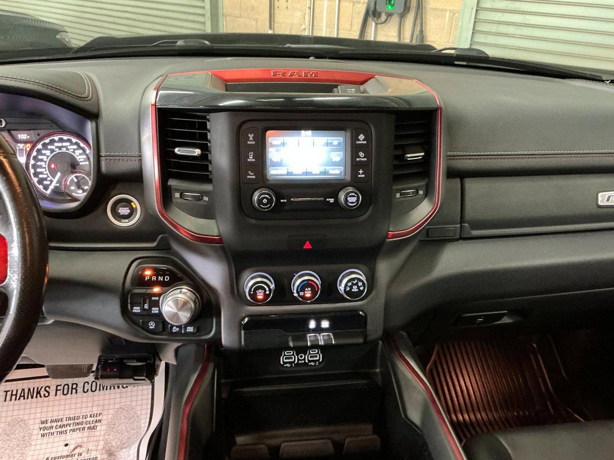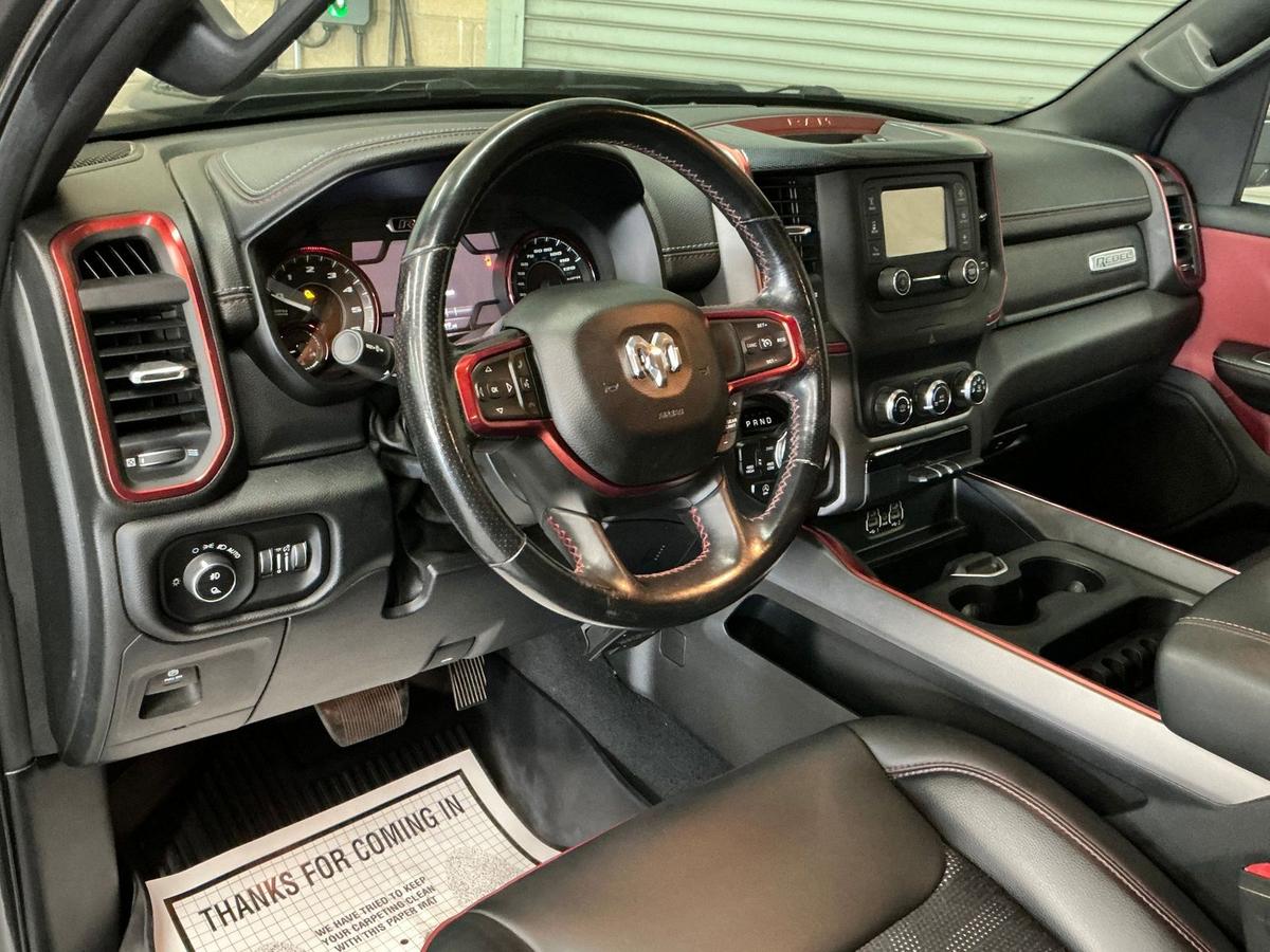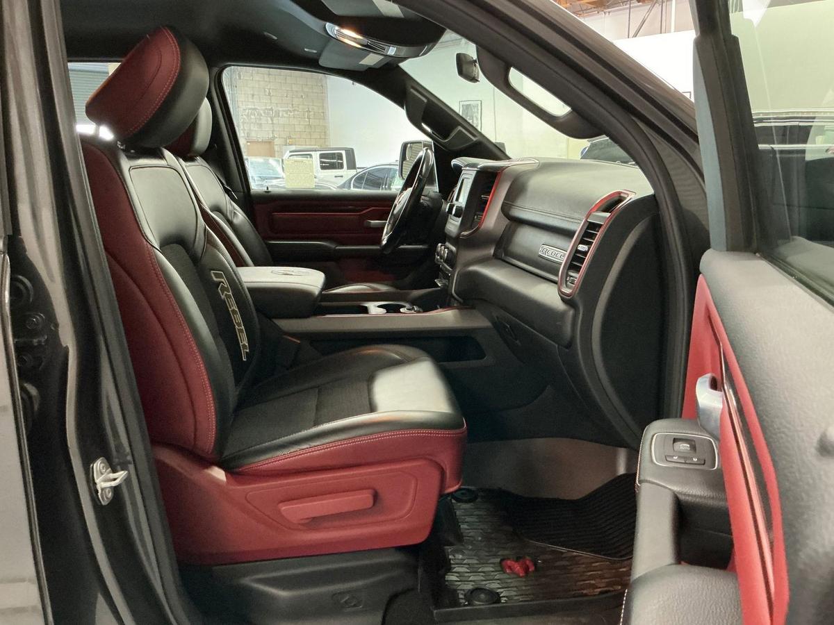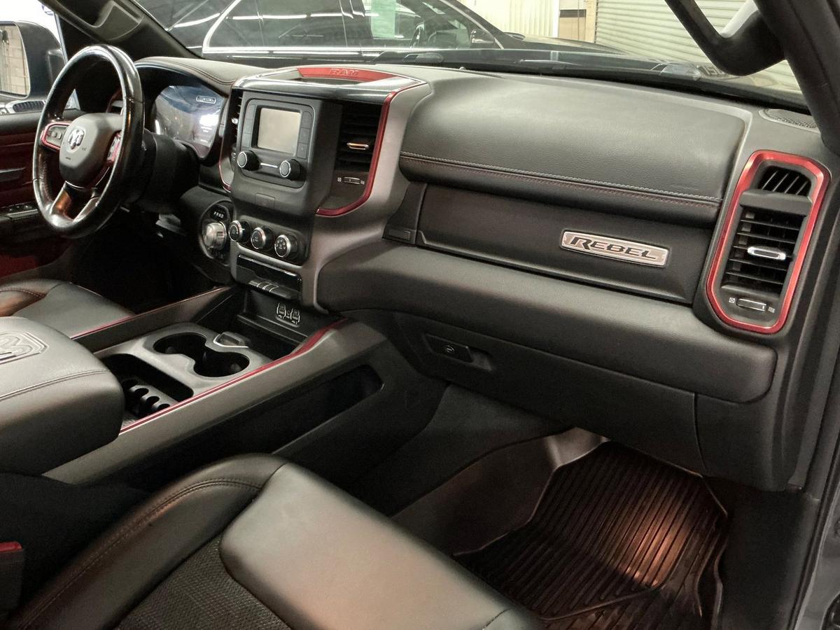Feast your eyes on this 2019 Ram 1500 Rebel Crew Cab!! This Off Road inspired Rebel is equipped with Performance suspension, Skid Plate undercarriage protection, Rear Camera and more! You will enjoy a unique ambiance with the rare Red and black interior color combo. With 52k pampered miles, this Carfax approved truck is hardly broken in, Call for more details today!<br><br>Awards:<br> * Motor Trend Automobiles of the year * NACTOY 2019 North American Truck of the Year * 2019 KBB.com 10 Favorite New-for-2019 Cars * 2019 KBB.com 10 Best Road Trip Cars * 2019 KBB.com Best Auto Tech Awards
