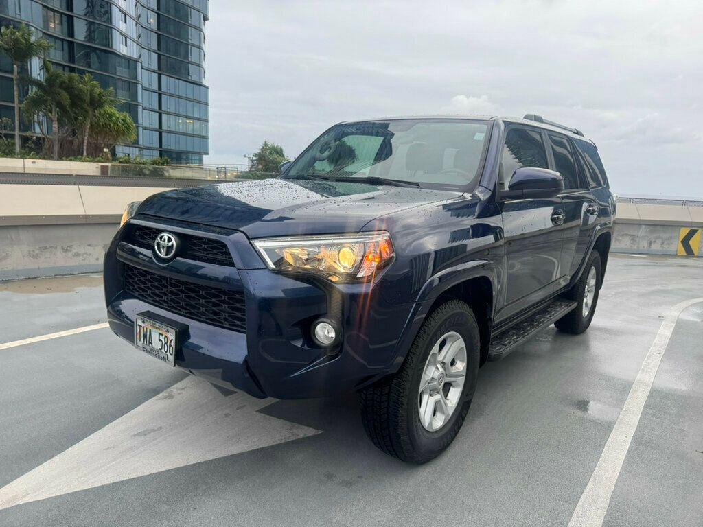 This 2019 Toyota 4Runner 4dr Low Mileage, Dealer Serviced, SR5 4WD, Immaculate features a 4.0L V6 CYLINDER 6cyl Gasoline engine. It is equipped with a 5 Speed Automatic transmission. The vehicle is Nautical Blue Metallic with a Black Graphite Cloth interior. It is offered As-Is, extended warranty is available. - Air Conditioning, Cruise Control, Tinted Windows, Power Steering, Power Mirrors, Leather Steering Wheel, Power Drivers Seat, Clock, Tachometer, Telescoping Steering Wheel, Steering Wheel Radio Controls, Driver Airbag, Passenger Airbag, Side Airbags, Security System, ABS Brakes, Rear Defogger, Fog Lights, Intermittent Wipers, AM/FM, CD Player, Premium Sound System, Cloth Interior Surface, Four Wheel Drive, Bluetooth, Center Arm Rest, Child Proof Door Locks, Daytime Running Lights, Heated Mirrors, Off Road Tires, Overhead Console, Premium Sound, Rear Spoiler, Rear Spoiler, Rear Wipers, Reverse Camera, Roll Stability Control, Side Curtain Airbags, Sliding Rear Window, Tire Pressure Monitor, Tow Hooks, Vanity Mirrors - Contact Dragan Ijacic at 808-596-0733 or autoconnectionhi@aol.com for more information. -