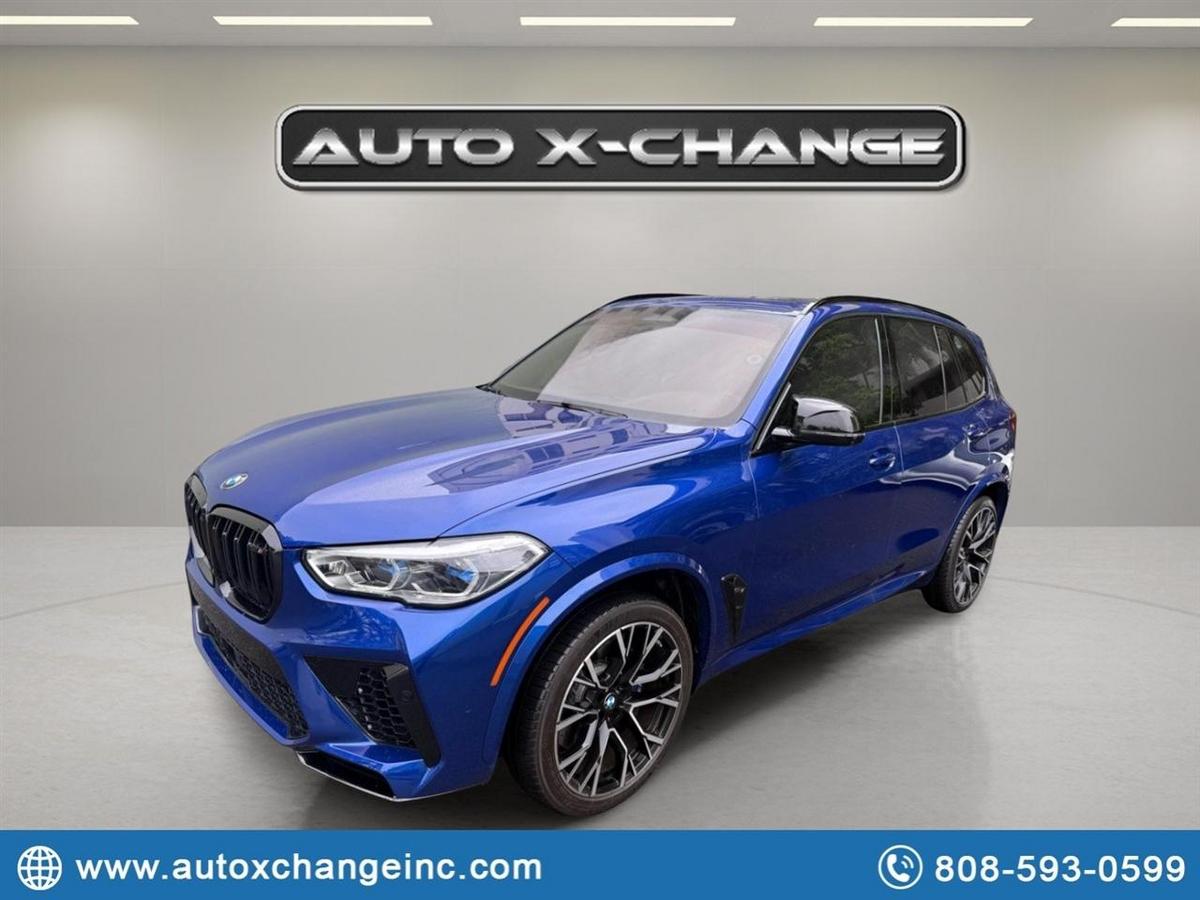 Introducing this stunning Blue 2020 BMW X5 M, a powerhouse on wheels ready to take you on an exhilarating ride. With its M TwinPower Turbo V8 engine under the hood, this beast is built to impress. The sleek exterior boasts body-colored accents, 21-inch performance tires, and a panoramic sunroof for those sunny drives. Step inside the luxurious cabin featuring 14-way power adjustable seats, a leather-wrapped sport steering wheel, and carbon fiber trim details.Entertainment is at your fingertips with a premium sound system, real-time traffic display, and wireless charging capabilities. Stay connected on the go with the integrated navigation system and WiFi hotspot. Safety is paramount with features like park distance control, frontal collision warning, and a surround view camera system providing a 360-degree view of your surroundings.But wait, there's more - a Carfax report is available for this vehicle, giving you peace of mind. Get ready to experience the perfect blend of performance, luxury, and technology in this 2020 BMW X5 M. It's not just a car - it's an experience waiting to be had. Visit our website www.autoxchangeinc.com for more information and photos on this or any other of our vehicles or call us today for a test drive at 808-593-0599.
