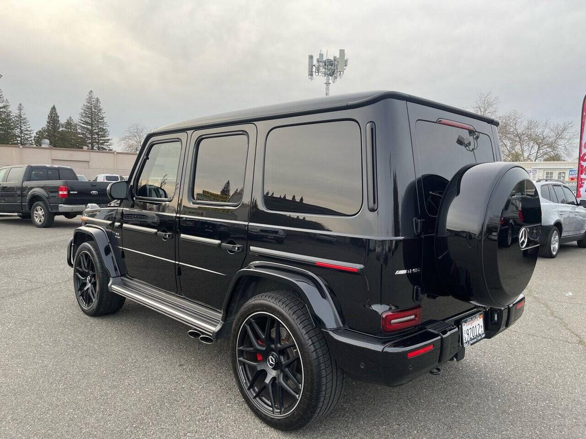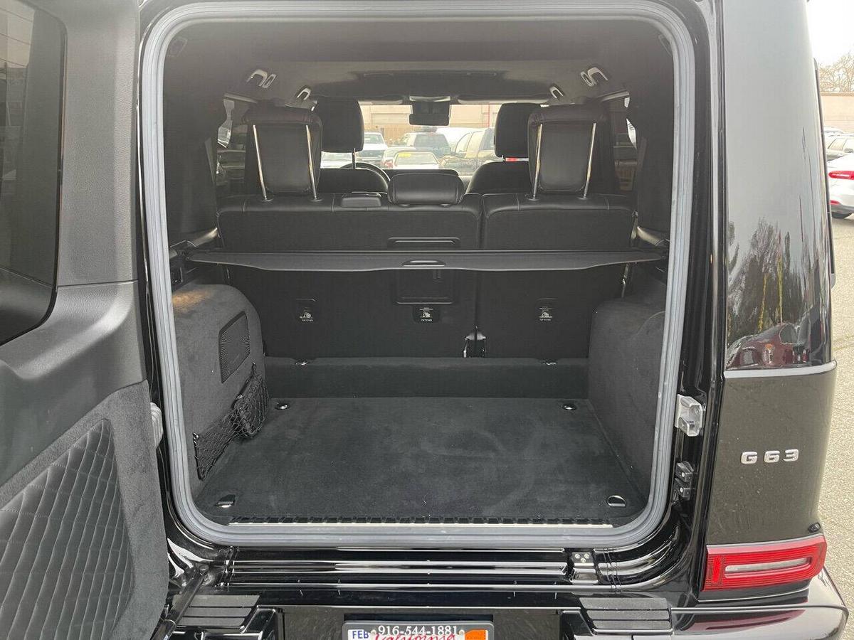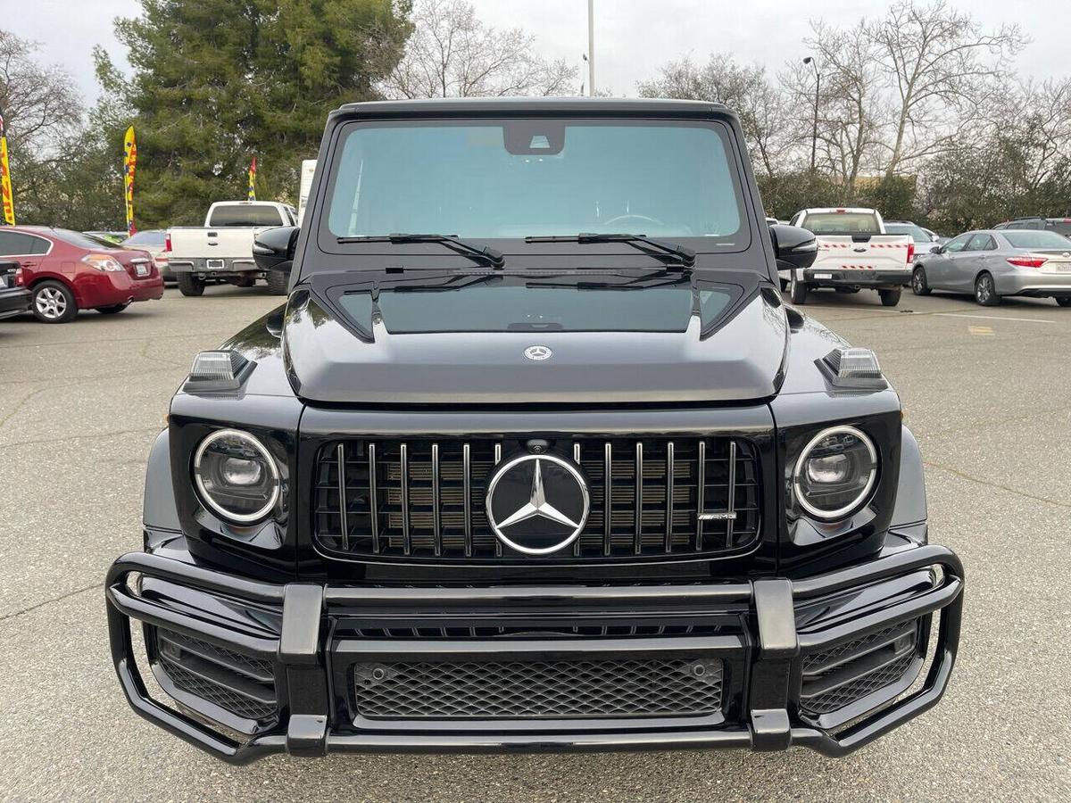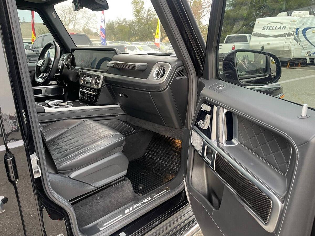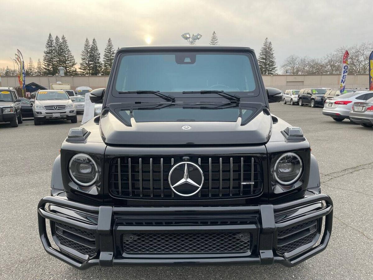 Dealer Notes G 63 AMG 4MATIC , 4D Sport Utility, V8, 9-Speed Automatic, 4MATIC , Black w/designo Exclusive Nappa Leather Upholstery, 15 Speakers, AMG Front/Rear Red Brake Calipers, AMG Night Package, AMG Top Speed Delimiter, Black Under Guard Protection, Brush Guard in Black, Burmester Surround Sound System, Exclusive Interior Package Plus, Exclusive Nappa Leather Trim, Gunmetal Grille, Heated Front Seats, Heated rear seats, Nappa Leather Trim, Navigation System, Night Package, Obsidian Black Elements, Power moonroof, Spare Wheel Cover in Obsidian Black, Wheels: 22 AMG Matte Black Cross-Spoke Forged. 2020 Mercedes-Benz G-Class G 63 AMG 4MATIC Obsidian Black Metallic 4MATIC 9-Speed Automatic V8 Highlighted Features *Emergency communication system *Navigation system *Lane departure *Leather upholstery *Automatic temperature control *Power moonroof *Wireless phone connectivity *Parking sensors Detailed Specifications ~Convenience Features 1-touch down Adaptive Cruise Control: Active Distance Assist DISTRONIC Air conditioning Auto tilt-away steering wheel Auto-dimming rearview mirror Automatic temperature control Driver door bin Driver vanity mirror Emergency communication system: Mercedes me connect (3 years included) Front beverage holders Front dual zone A/C Garage door transmitter Head restraints memory Illuminated entry Memory seat Navigation system Overhead console Passenger door bin Passenger vanity mirror Power moonroof Power windows Proximity key: push button start only Rear air conditioning Rear beverage holders Rear door bins Remote engine start: smart device only Remote keyless entry Residual heat recirculation Speed control Steering wheel memory Telescoping steering wheel Tilt steering wheel ~Suspension/Handling Adaptive suspension Alloy wheels Front anti-roll bar Front wheel independent suspension Power steering Rear anti-roll bar Speed-sensing steering Sport suspension ~Entertainment Features 1st row LCD monitors: 2 AM/FM radio: SiriusXM Diversity antenna Primary LCD size: 12.3 Radio data system Satellite radio trial duration with new vehicle purchase (months): 6 Smart device integration: Apple CarPlay/Android Auto Speaker type: Burmester Speakers: 15 Steering wheel mounted audio controls Turn-by-turn navigation directions: Mercedes me connect Concierge Wireless phone connectivity: Bluetooth ~Seats And Trim Front center armrest Front seats: bucket Genuine wood console insert Genuine wood dashboard insert Genuine wood door panel insert Heated front seats Heated rear seats Leather upholstery Max seating capacity: 5 Power 4-way driver lumbar support Power 4-way passenger lumbar support Power driver seat Power passenger seat Rear seat center armrest Rear seats: split-bench Rear seats Folding position: flip forward cushion/seatback Split folding rear seat Sport steering wheel ~Powertrain Compressor: twin turbo Cylinder configuration: V-8 Cylinder deactivation Drive type: AMG Performance 4MATIC Engine liters: 4.0 Engine location: front Front locking differential Fuel economy city: 13mpg Fuel economy combined: 14mpg Fuel economy highway: 15mpg Fuel tank capacity: 26.4gal. Horsepower: 577hp @ 6,000RPM Limited slip differential: electro-mechanical Manual-shift auto: AMG SPEEDSHIFT TCT Mode select transmission Number of valves: 32 Rear locking differential Recommended fuel: Premium Unleaded Torque: 627 lb.-ft. @ 2,500RPM Transmission: 9 speed automatic Variable intake manifold Variable valve control ~Off-Road Capability Approach angle: 27 deg Departure angle: 29 deg Ground clearance (max): 267mm (10.5) Ground clearance (min): 241mm (9.5) Ramp breakover angle: 25 deg ~Body Exterior Auto-dimming door mirrors Bodyside moldings Bumpers: body-color Door mirrors: body-color