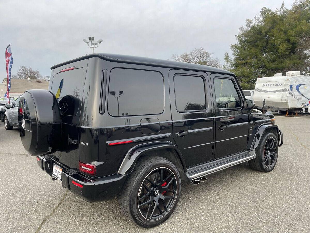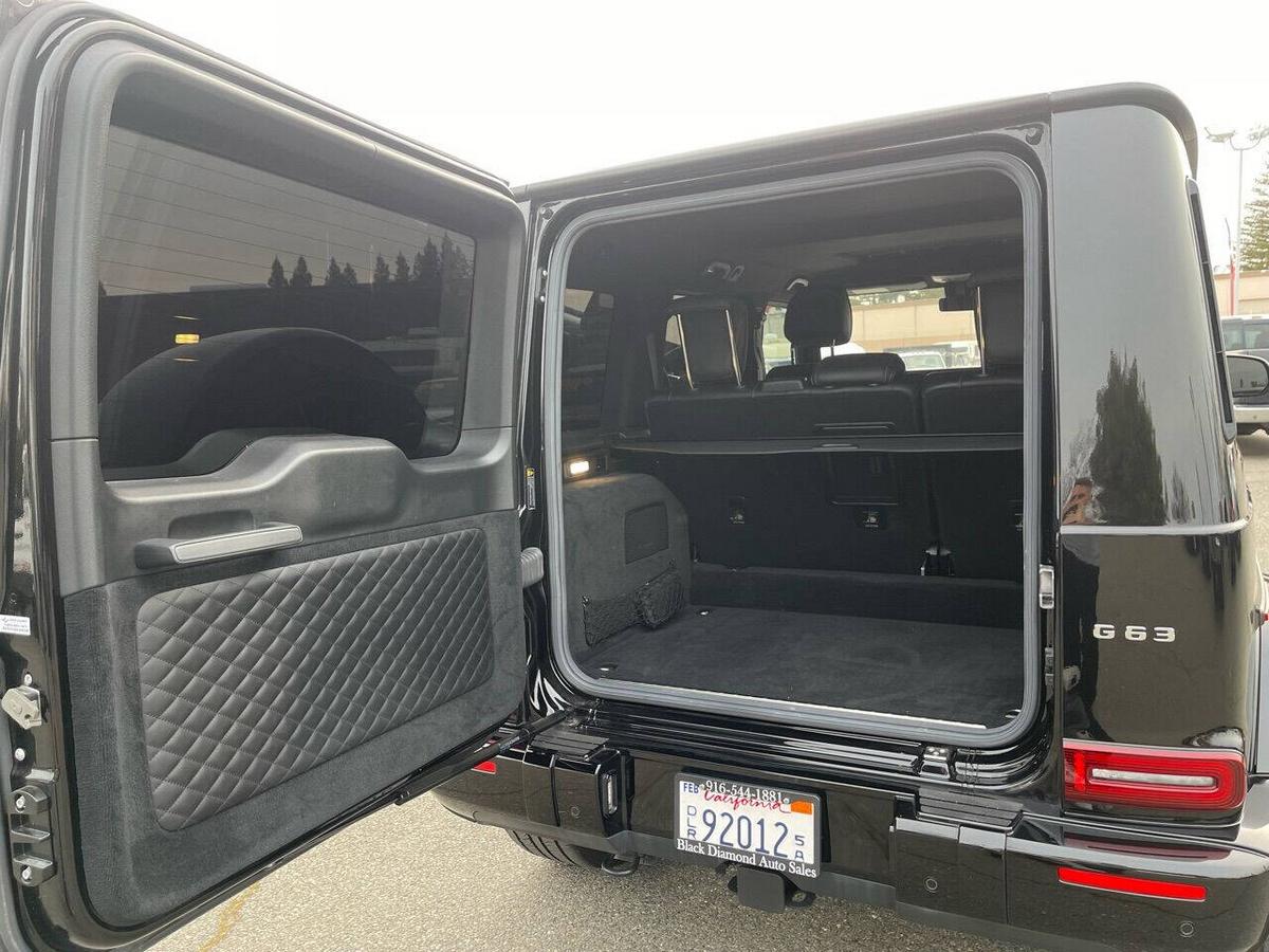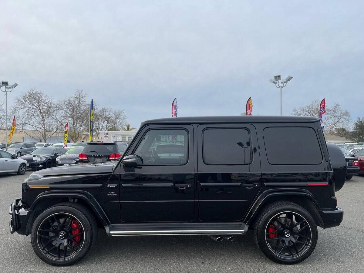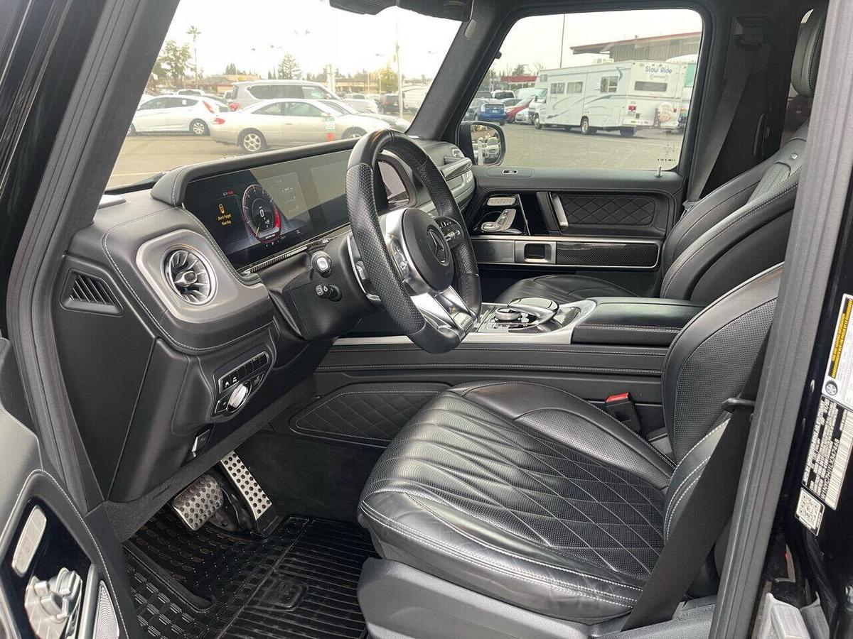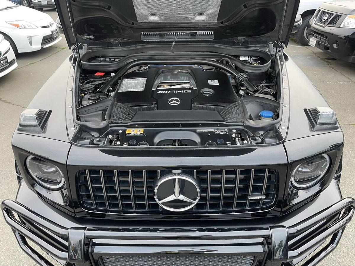 Dealer Notes G 63 AMG 4MATIC , 4D Sport Utility, V8, 9-Speed Automatic, 4MATIC , Black w/designo Exclusive Nappa Leather Upholstery, 15 Speakers, AMG Front/Rear Red Brake Calipers, AMG Night Package, AMG Top Speed Delimiter, Black Under Guard Protection, Brush Guard in Black, Burmester Surround Sound System, Exclusive Interior Package Plus, Exclusive Nappa Leather Trim, Gunmetal Grille, Heated Front Seats, Heated rear seats, Nappa Leather Trim, Navigation System, Night Package, Obsidian Black Elements, Power moonroof, Spare Wheel Cover in Obsidian Black, Wheels: 22 AMG Matte Black Cross-Spoke Forged. 2020 Mercedes-Benz G-Class G 63 AMG 4MATIC Obsidian Black Metallic 4MATIC 9-Speed Automatic V8 Highlighted Features *Emergency communication system *Navigation system *Lane departure *Leather upholstery *Automatic temperature control *Power moonroof *Wireless phone connectivity *Parking sensors Detailed Specifications ~Convenience Features 1-touch down Adaptive Cruise Control: Active Distance Assist DISTRONIC Air conditioning Auto tilt-away steering wheel Auto-dimming rearview mirror Automatic temperature control Driver door bin Driver vanity mirror Emergency communication system: Mercedes me connect (3 years included) Front beverage holders Front dual zone A/C Garage door transmitter Head restraints memory Illuminated entry Memory seat Navigation system Overhead console Passenger door bin Passenger vanity mirror Power moonroof Power windows Proximity key: push button start only Rear air conditioning Rear beverage holders Rear door bins Remote engine start: smart device only Remote keyless entry Residual heat recirculation Speed control Steering wheel memory Telescoping steering wheel Tilt steering wheel ~Suspension/Handling Adaptive suspension Alloy wheels Front anti-roll bar Front wheel independent suspension Power steering Rear anti-roll bar Speed-sensing steering Sport suspension ~Entertainment Features 1st row LCD monitors: 2 AM/FM radio: SiriusXM Diversity antenna Primary LCD size: 12.3 Radio data system Satellite radio trial duration with new vehicle purchase (months): 6 Smart device integration: Apple CarPlay/Android Auto Speaker type: Burmester Speakers: 15 Steering wheel mounted audio controls Turn-by-turn navigation directions: Mercedes me connect Concierge Wireless phone connectivity: Bluetooth ~Seats And Trim Front center armrest Front seats: bucket Genuine wood console insert Genuine wood dashboard insert Genuine wood door panel insert Heated front seats Heated rear seats Leather upholstery Max seating capacity: 5 Power 4-way driver lumbar support Power 4-way passenger lumbar support Power driver seat Power passenger seat Rear seat center armrest Rear seats: split-bench Rear seats Folding position: flip forward cushion/seatback Split folding rear seat Sport steering wheel ~Powertrain Compressor: twin turbo Cylinder configuration: V-8 Cylinder deactivation Drive type: AMG Performance 4MATIC Engine liters: 4.0 Engine location: front Front locking differential Fuel economy city: 13mpg Fuel economy combined: 14mpg Fuel economy highway: 15mpg Fuel tank capacity: 26.4gal. Horsepower: 577hp @ 6,000RPM Limited slip differential: electro-mechanical Manual-shift auto: AMG SPEEDSHIFT TCT Mode select transmission Number of valves: 32 Rear locking differential Recommended fuel: Premium Unleaded Torque: 627 lb.-ft. @ 2,500RPM Transmission: 9 speed automatic Variable intake manifold Variable valve control ~Off-Road Capability Approach angle: 27 deg Departure angle: 29 deg Ground clearance (max): 267mm (10.5) Ground clearance (min): 241mm (9.5) Ramp breakover angle: 25 deg ~Body Exterior Auto-dimming door mirrors Bodyside moldings Bumpers: body-color Door mirrors: body-color