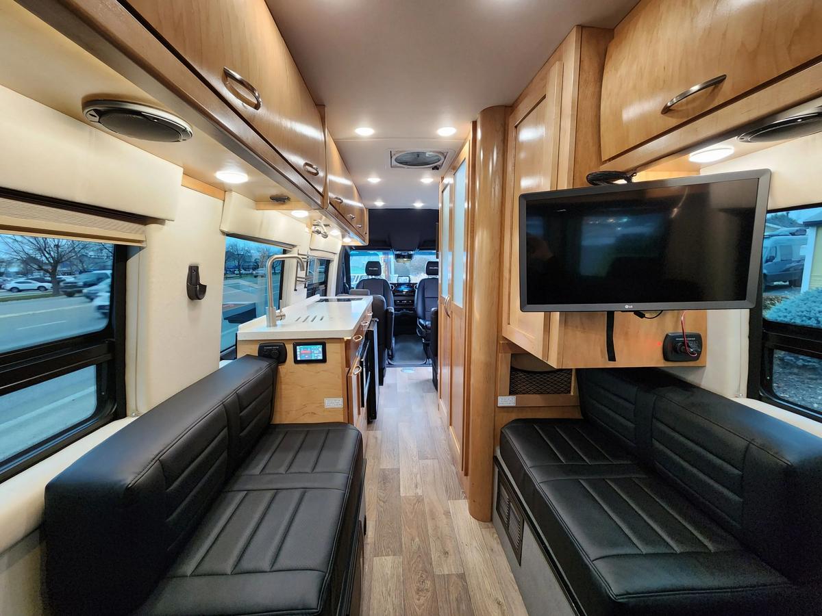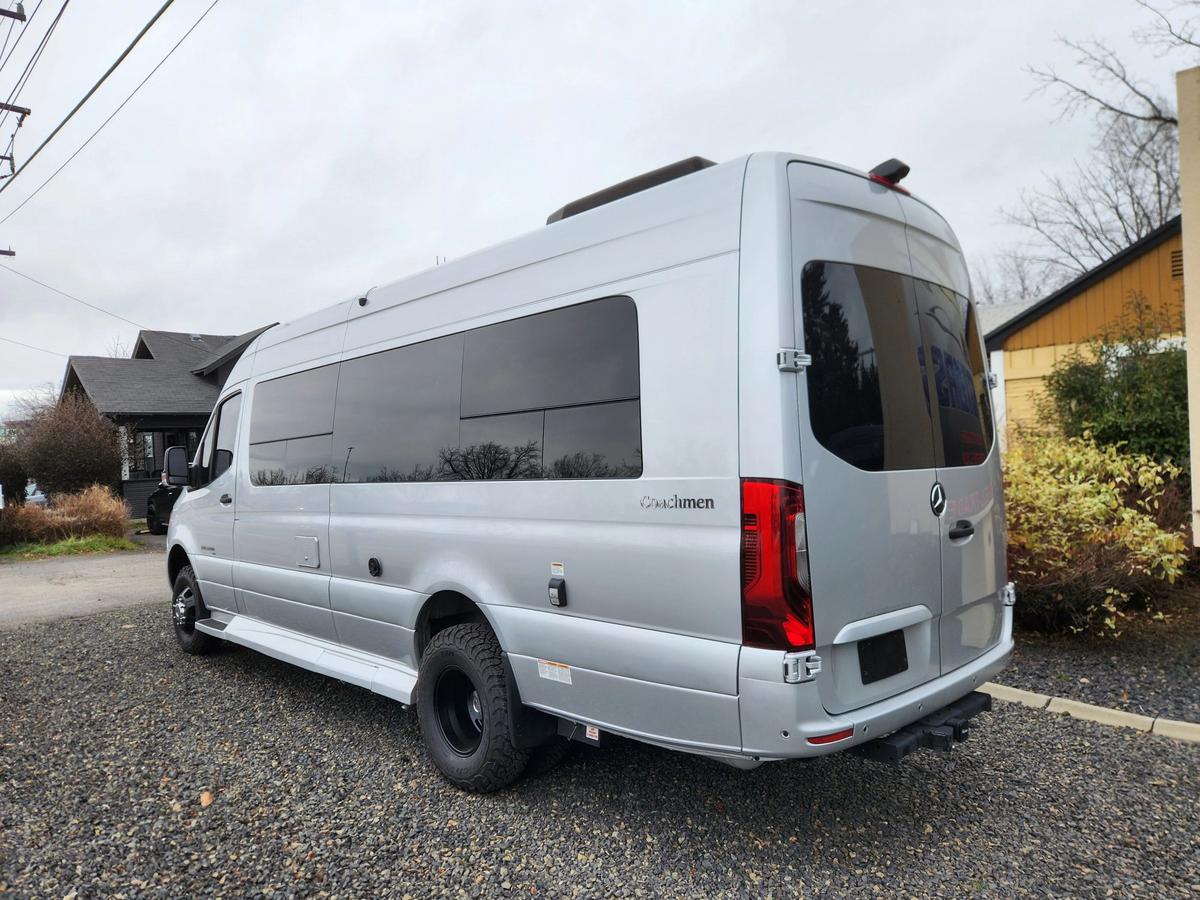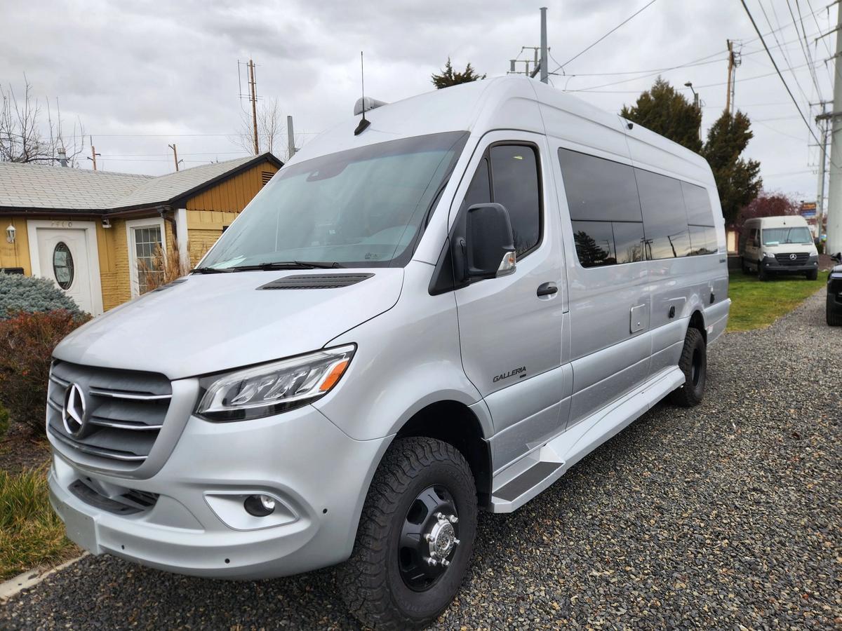 The 2022 Coachmen Galleria 24Q, built on the Mercedes-Benz 3500XD Extended Sprinter AWD chassis, is a luxury Class B motorhome designed for travelers who expect more from the road. Whether you re touring the country, tailgating in style, or working on the go, the Galleria 24Q delivers quality, comfort, and confidence behind the wheel.Built for All-Season TravelR-15 rock and steel-based insulationSound-deadening Cozy Wrap with R-38 reflective barrierMarine-grade vinyl walls with 3/8 foam backerComposite radiant heat barrier and HushMat for reduced noise and vibrationHeavy-duty industrial flooringOptional Polar Package Plus with heated tanks and protected water linesSumoSprings upgraded suspension for a smoother rideInterior FeaturesOnyx interior decor with High Gloss Maple cabinetryFour heated swivel captain s chairs with self-leveling armrestsPower rear sofa converts into a 68 x 76 bedFull wet bath with hardwood vanity and showerGalley kitchen with induction cooktop, convection microwave, refrigerator/freezer, and deep sinkTurbo II 12V air conditioner with quiet three-speed operationSmart control panel for tank levels, lighting, power, and climate managementMercedes-Benz AWD Chassis Technology3.0L V6 turbo diesel engine, 188 hp, 325 lb-ft torque7-speed automatic transmissionAll-Wheel Drive system for superior traction and stabilityMBUX infotainment system with 10.25 touchscreenApple CarPlay, Android Auto, and Hey Mercedes voice controlNewly added 360-degree camera system for full surround visibilityAdvanced safety features including blind spot assist, lane keep assist, and collision avoidanceSpecificationsGVWR: 11,030 lbsGCWR: 15,250 lbsTowing capacity: 5,000 lbsFuel capacity: 24.5 gallonsLP capacity: 9.7 gallonsFresh water: 27 gallonsGrey water: 22 gallonsBlack water: 19 gallonsExterior height: 9 6Exterior length: 24 3Power awning: 13 1Finished in Brilliant Silver with Onyx interior and High Gloss Maple cabinetry, this AWD Galleria 24Q is fully loaded and in stock. VIN: W1X8ED6YXMT055584. Includes upgraded 360-degree camera system.