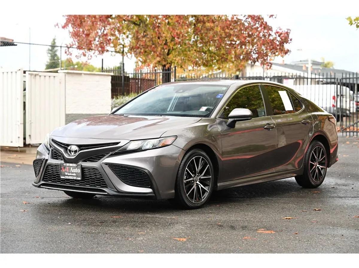 Discover the perfect blend of style, performance, and advanced technology with this sleek 2021 Toyota Camry SE Sedan in elegant Gray. Powered by a responsive 2.5L 4-cylinder engine and smooth 8-speed automatic transmission, this FWD sedan delivers a dynamic yet efficient driving experience. Equipped with premium features like LED headlamps, a rear spoiler, and striking 19 wheels, it stands out on every road.Stay connected and comfortable with Bluetooth wireless, navigation system, and dual-zone air conditioning. Safety is paramount with comprehensive protection including blind-spot monitoring, lane departure alert, dynamic cruise control, backup camera, and multiple airbags for all-around security. Enjoy added convenience with power door locks, keyless entry, power seat, and a power liftgate release.This well-maintained used Camry SE offers reliability, modern comforts, and eye-catching style—perfect for daily commutes or weekend adventures. Visit A-1 Auto Wholesale in Sacramento to experience this exceptional sedan firsthand and drive home with confidence today!