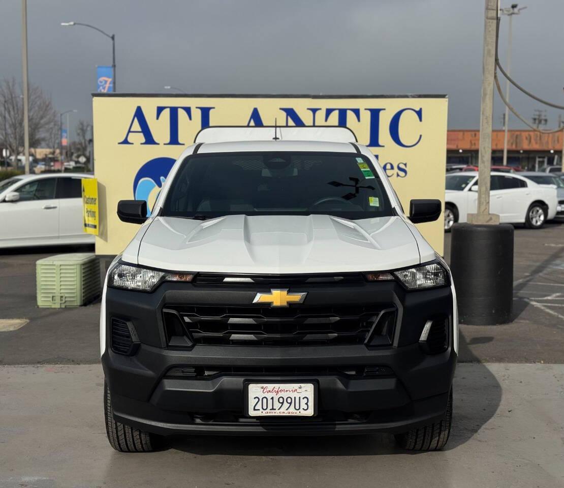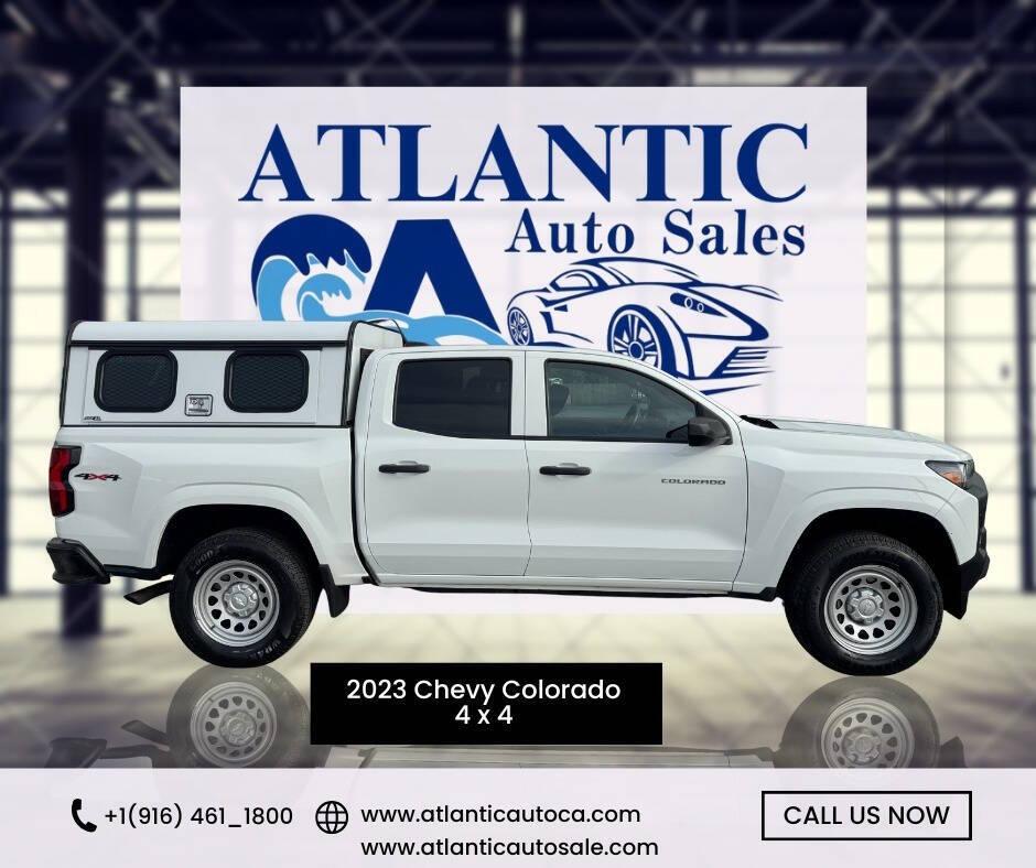 ATLANTIC AUTO SALES 1800 FULTON AVE SACRAMENTO.CA 95825 (916)-461-1800 http://www.atlanticautoca.com http://www.atlanticautosale.com PLEASE CALL BEFORE COMING SO WE CAN SERVE YOU BETTER. ONE OWNER VIN : 1GCPTBEK8P1185205 Make : Chevrolet Model : Colorado Model Year : 2023 Trim Package : Work Truck 4x4 4dr Crew Cab 5 ft. SB Body Style : Pickup Truck Engine : 2.7L Turbo I4 310hp 391ft. lbs. Fuel Type : Gasoline Transmission : Automatic 8-Speed Drivetrain : 4X4 Disclaimer All advertised prices exclude government fees and taxes, any finance charges, any dealer document preparation charge, and any emission testing charge. While we try to make sure that all prices posted here are accurate at all times, we cannot be responsible for typographical and other errors that may appear on the site. We make every effort to provide you the most accurate, up-to-the-minute information; however it is your responsibility to verify with the Dealer that all details listed are accurate. The dealership is not responsible for typographical, pricing, product information, advertising or shipping errors. Advertised prices and available quantities are subject to change without notice. All rates and offers are dependent on bank approval, which varies based on applicant's credit as well as the vehicle.