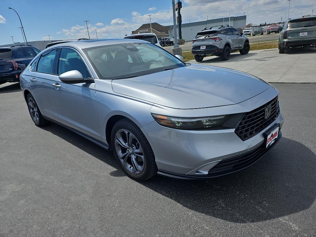 Protect it from unwanted accidents with a cutting edge backup camera system. The Honda Accord has auto-adjust speed for safe following. This 2023 Honda Accord offers Apple CarPlay for seamless connectivity. This unit features a hands-free Bluetooth phone system. The Honda Accord offers Android Auto for seamless smartphone integration. The Honda Accord has a clean CARFAX vehicle history report. Good News! This certified CARFAX 1-owner vehicle has only had one owner before you. This Honda Accord's Forward Collision Warning feature alerts drivers to potential front-end collisions. This mid-size car keeps you comfortable with Auto Climate. It has a 4 Cyl, 1.5L high output engine. Set the temperature exactly where you are most comfortable in this 2023 Honda Accord . The fan speed and temperature will automatically adjust to maintain your preferred zone climate. The Honda Accord shines with an exquisite metallic silver exterior finish. Front wheel drive on this unit gives you better traction and better fuel economy.