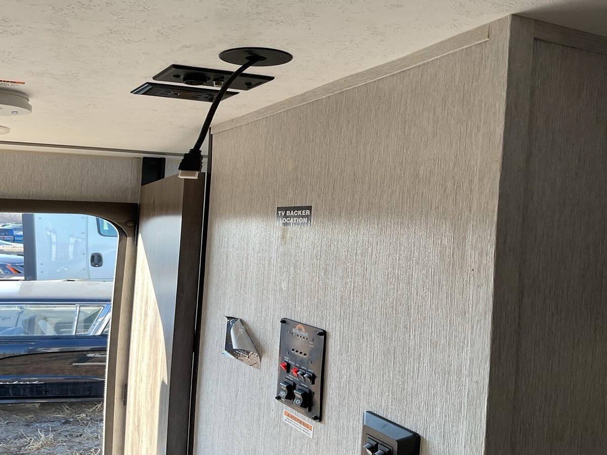 Rear door for extra room. <br />This is new to us and looks new inside. Signs of non-use everywhere - stickers in the microwave, plastic on the bed. Service Contract and GAP contracts are available for purchase on most vehicles. We partner with local and national lenders to find financing that fits your needs. Call today! 231-922-8180 x1