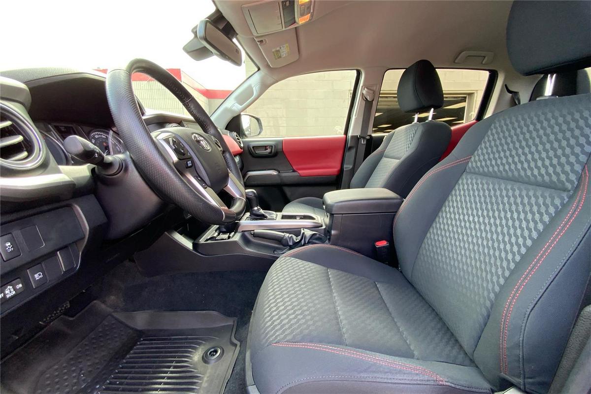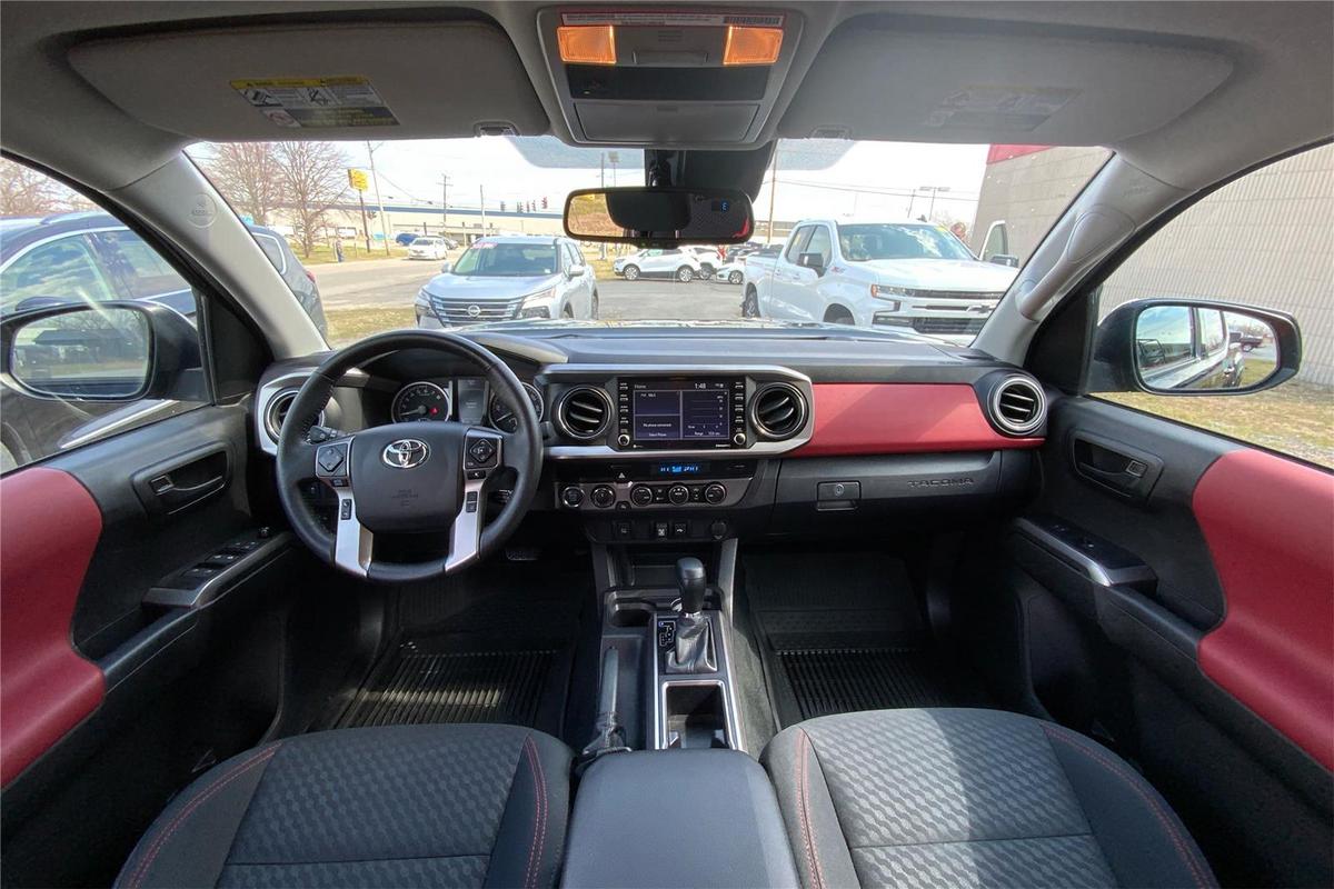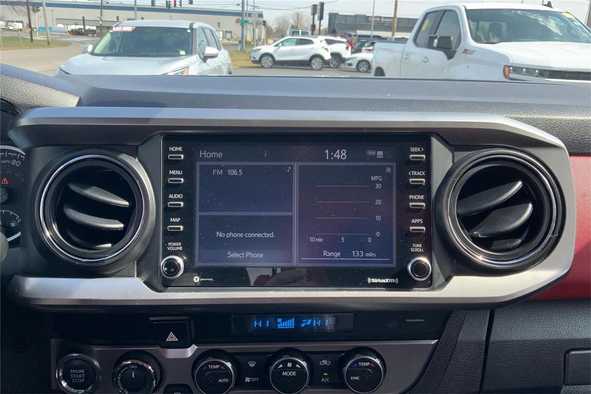Experience the versatility and reliability of the 2023 Toyota Tacoma SR5, a proven pickup that combines rugged performance with modern tech features. With just over 32,500 miles, this used truck is equipped with a powerful 3.5L V6 engine delivering 278 horsepower and 265 lb-ft of torque, ensuring ample power for work or play. Its four-wheel-drive system provides confidence on tough terrains, while the automatic transmission offers smooth handling. The sleek black exterior and matching black interior accented with red details give it a stylish yet functional look. This Tacoma comes with a comprehensive suite of features, including adaptive cruise control, Apple CarPlay, a backup camera, Bluetooth connectivity, collision warning, fog lights, keyless entry, push start, satellite radio readiness, a tow package, and a Wi-Fi hotspot, making it a well-rounded pickup for any driver. This truck is loaded with safety and security features designed to protect you and your passengers. It includes a rear seat reminder, dual front knee airbags, active head restraints, 4-wheel ABS, emergency braking preparation, anti-lockout power door locks, and auto-locking door locks. These elements work together to enhance safety during every drive, providing peace of mind whether you're on city streets or off-road adventures. The Tacoma SR5's safety features underscore its commitment to secure transportation, making it a smart choice for those seeking reliability and safety in a used pickup. 2023 Toyota Tacoma Safety and Security Features The Tacoma is equipped with a rear seat reminder to prevent accidental oversight, along with dual front knee airbags and active head restraints to protect occupants in a collision. Four-wheel ABS ensures optimal stopping power, while emergency braking preparation adds an extra layer of safety. Power door locks include anti-lockout functions, preventing lockouts, and auto-locking locks enhance security when the vehicle is in motion. These features collectively provide a comprehensive safety package for the driver and passengers. 2023 Toyota Tacoma Entertainment and Technology Features Technology is seamlessly integrated into the Tacoma SR5 with an 8-inch infotainment touchscreen, offering a user-friendly interface for entertainment and navigation. The truck supports Toyota Connected Services, enabling smart device app compatibility, while voice-operated hands-free calling and radio functions keep you connected safely on the go. Amazon Alexa compatibility allows for easy in-car app access, and electronic messaging assistance with read and voice functions enhances communication. The system delivers clear sound through six speakers and supports auxiliary audio input via USB, providing a versatile and connected driving experience. 2023 Toyota Tacoma Performance Features The Tacoma SR5 features an electronic high-low 4WD selector, giving you control over traction and power distribution. Its part-time 4WD system allows you to switch between 2WD and 4WD modes, optimizing performance for various driving conditions. These performance features make the Tacoma a dependable workhorse capable of handling challenging terrains with ease.