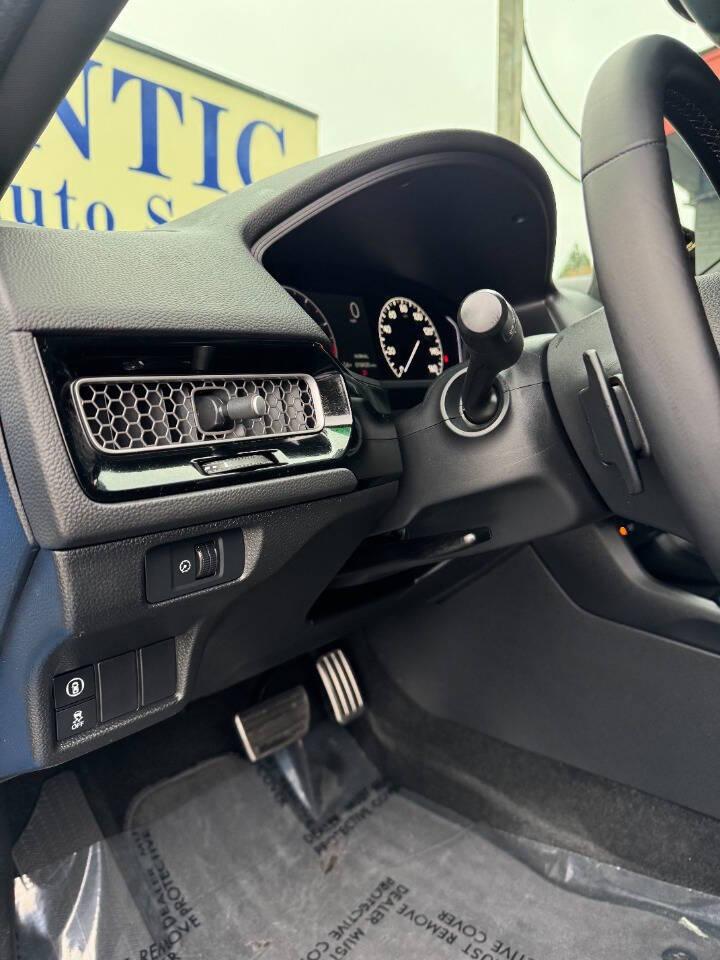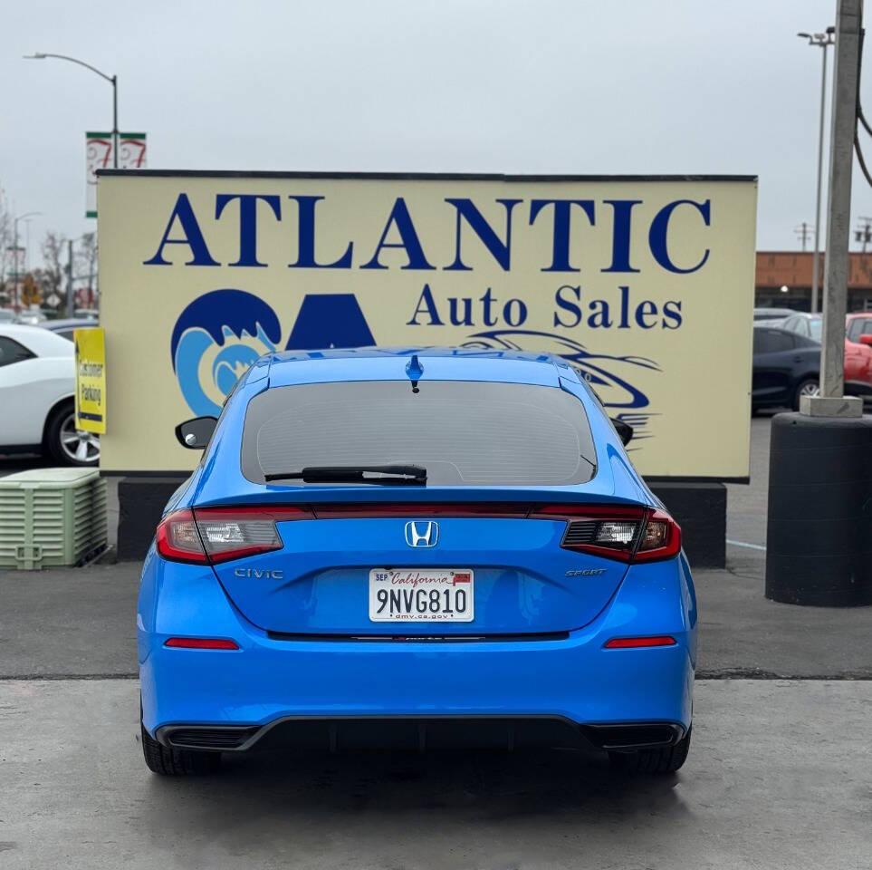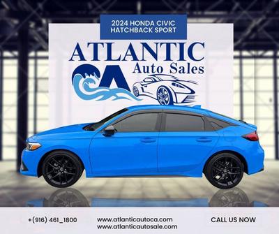 ATLANTIC AUTO SALES 1800 FULTON AVE SACRAMENTO.CA 95825 (916)-461-1800 http://www.atlanticautoca.com PLEASE CALL BEFORE COMING SO WE CAN SERVE YOU BETTER. ONE OWNER VIN : 19XFL2H86RE035878 Make : Honda Model : Civic Model Year : 2024 Trim Package : Sport 4dr Hatchback CVT Body Style : Hatchback Engine : 2.0L I4 158hp 138ft. lbs. Fuel Type : Gasoline Transmission : CVT 7-Speed Drivetrain : FWD Disclaimer All advertised prices exclude government fees and taxes, any finance charges, any dealer document preparation charge, and any emission testing charge. While we try to make sure that all prices posted here are accurate at all times, we cannot be responsible for typographical and other errors that may appear on the site. We make every effort to provide you the most accurate, up-to-the-minute information; however it is your responsibility to verify with the Dealer that all details listed are accurate. The dealership is not responsible for typographical, pricing, product information, advertising or shipping errors. Advertised prices and available quantities are subject to change without notice. All rates and offers are dependent on bank approval, which varies based on applicant's credit as well as the vehicle.