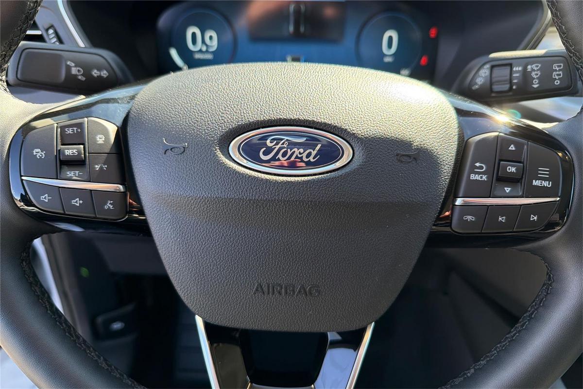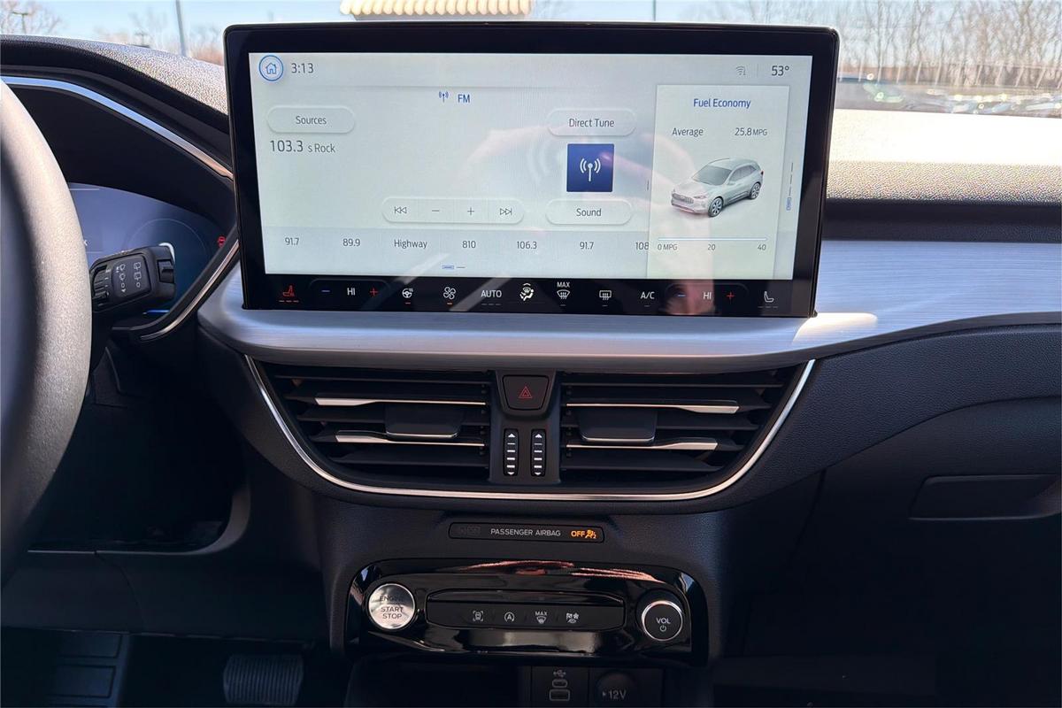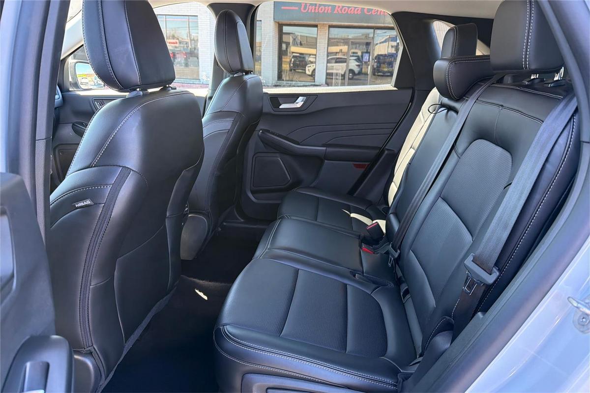 Discover the 2025 Ford Escape Platinum, a sophisticated SUV that combines luxury, performance, and advanced technology. With just over 15,600 miles, this used model presents a compelling option for drivers seeking a reliable, stylish vehicle. Finished in Space Silver Metallic, it offers a sleek exterior that stands out on the road. Under the hood, it features a turbocharged 2.0-liter four-cylinder engine delivering 250 horsepower and 275 lb-ft of torque, paired with an automatic ECVT transmission and all-wheel drive. This combination ensures confident handling and impressive fuel efficiency of up to 23 mpg city and 31 mpg highway. Inside, the Escape offers spacious seating for five with premium comfort, heated seats, and memory settings. The Platinum trim is packed with features like adaptive cruise control, Apple CarPlay, a backup camera, blind spot monitoring, Bluetooth connectivity, collision warning, cross traffic alert, a head-up display, keyless entry, lane keep assist, navigation, push start, satellite radio readiness, WiFi hotspot, and wireless phone charging. Whether commuting or hitting the open road, this SUV is built to keep you connected, comfortable, and in control. The 2025 Ford Escape Safety and Security Features This Escape is equipped with top safety features including automatic emergency braking at the rear and intersection turn points, helping prevent accidents before they happen. Traffic sign recognition with adaptive speed limiting keeps you aware of road changes, while driver's knee airbags and rear parking sensors add extra layers of protection. The vehicle also features four-wheel ABS, emergency braking preparation, anti-lockout power door locks, cornering brake control, and auto-locking door locks, ensuring security and stability in diverse driving conditions. These safety systems work together to provide peace of mind for you and your passengers. The 2025 Ford Escape Entertainment and Technology Features Technology is at the forefront with a 13.2-inch infotainment touchscreen that delivers intuitive access to your favorite apps and functions. FordPass Connect enables smart device app compatibility, allowing remote engine start and vehicle management from your phone. Hands-free, voice-operated phone calls and radio controls, along with internet radio via Pandora, keep you entertained on the go. The real-time traffic navigation system provides up-to-date route information, while connected in-car apps facilitate seamless marketplace integration. For added convenience, the system offers electronic messaging assistance with a read function, ensuring you stay connected safely while on the move. The 2025 Ford Escape Performance Features This used Escape features intelligent driving technology, including auto start/stop for improved fuel economy and reduced emissions. Its on-demand four-wheel-drive system provides enhanced traction and stability across different terrains and weather conditions, making it a versatile choice for various driving needs. Combining performance with efficiency, the Escape Platinum continues to deliver a reliable and engaging driving experience.